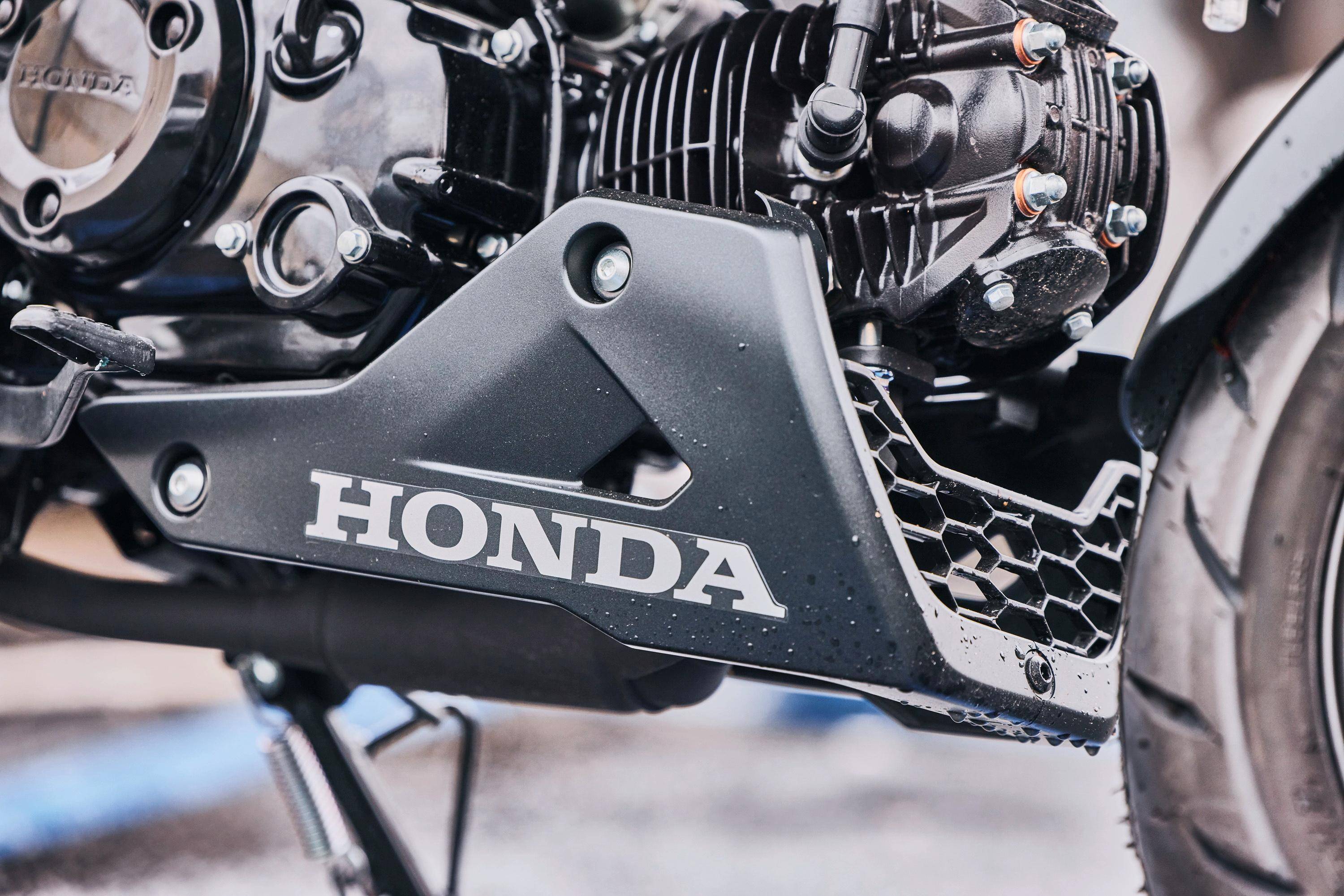 2025 GROM 搭載一副風(fēng)冷四沖程臥式單氣缸、SOHC 兩氣閥的發(fā)動機,缸徑、行程為 50 mm x 63.1 mm,排氣量 123 cc,配備了 PGM-FI 電子燃油噴注系統(tǒng),最大動力輸出 7.2 kw(約 9.8 匹)。該動力單元也被用于現(xiàn)行款的 Monkey 125、CT125 Hunter Cub 和 ST125 DAX。車體采用一副鋼管車架,倒立式的前叉,數(shù)字式的儀表板,前后碟式制動系統(tǒng),直徑為 12 英寸的前后車輪。