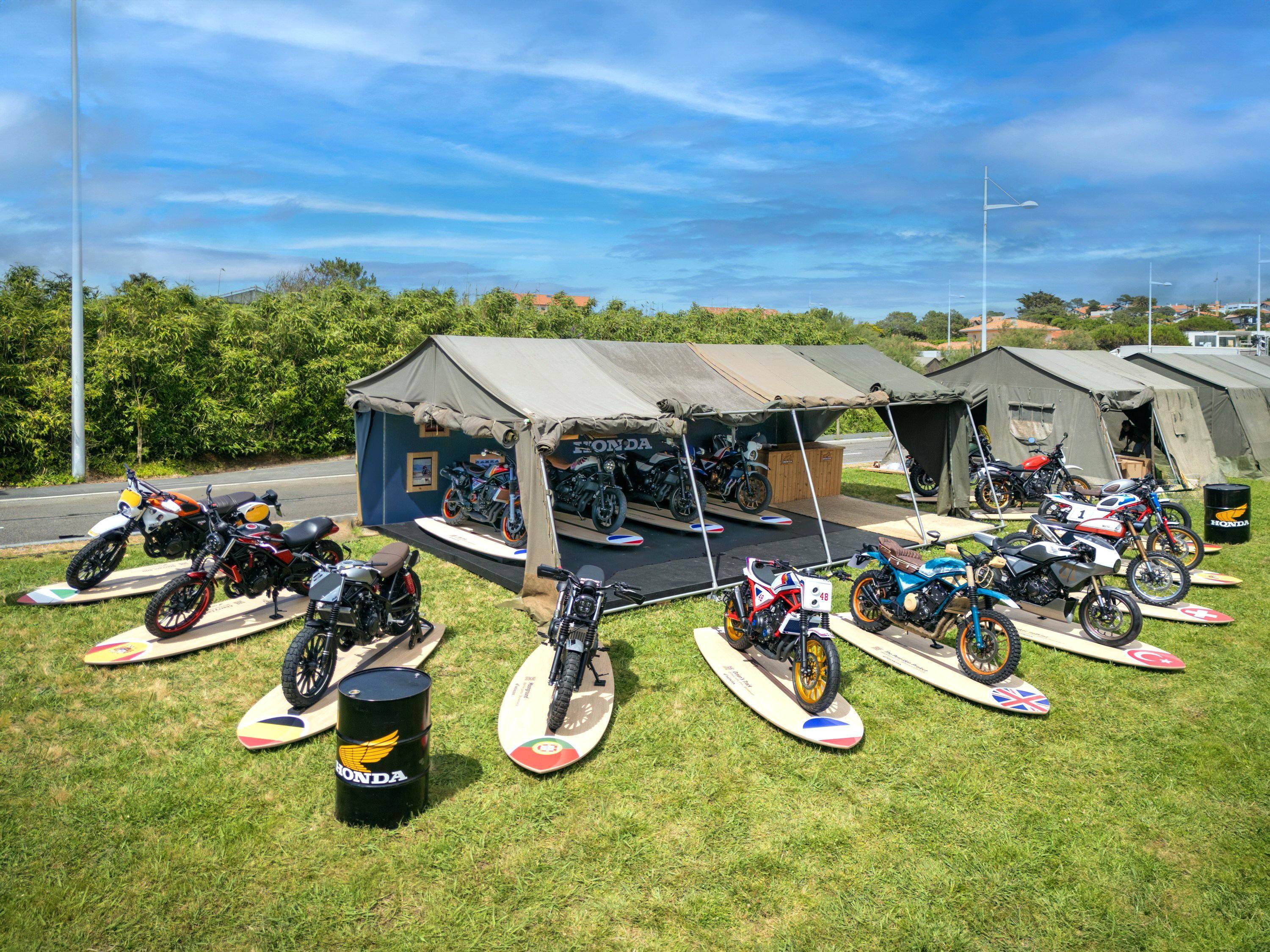 六月 12 日,Honda 歐洲分公司發(fā)布了十六個基于復(fù)古越野 CL500 和 CL250,由他們在歐洲各地經(jīng)銷商或合作工作室制作而成的定制作品,并于上周(六月 12 - 16 日)在法國比亞里茨(Biarritz)舉行的 2024 Wheels & Waves “ 車輪與沖浪 ” 活動中展出。十六個作品里面,十五個以 CL500 作為基礎(chǔ)車、一個以 CL250 作為基礎(chǔ)車,