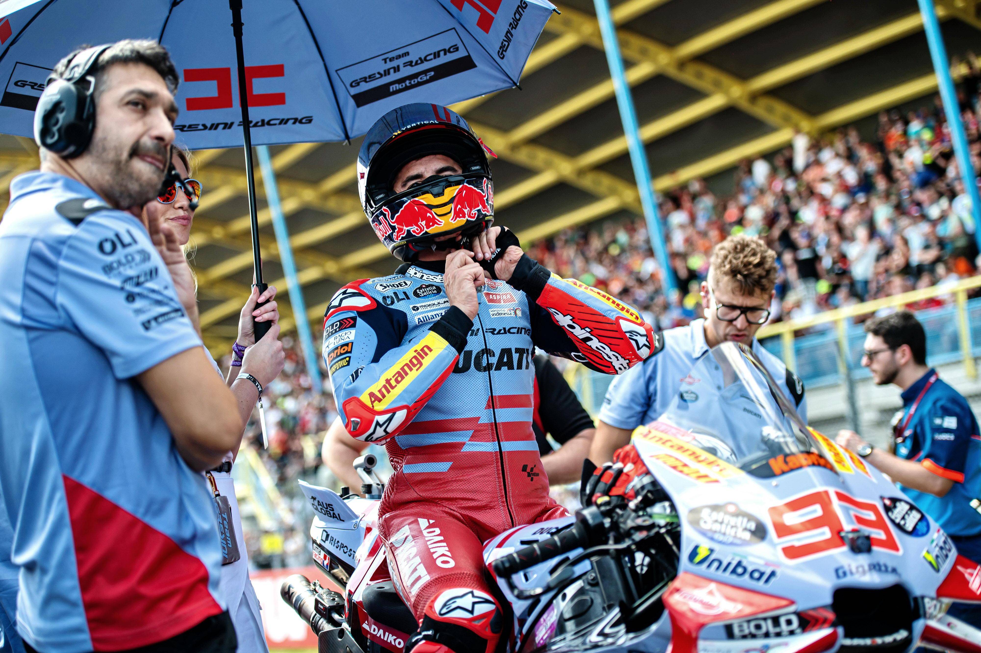 在 Q2,小馬昆斯跑出了第四快的 1 分 30.979 秒最佳圈速,在 Q2 最后階段發(fā)生摔車意外的馬昆斯、則跑出了第七快的 1 分 31.378 秒最佳圈速。由于拿到 Q2 第二名的車手,因為在賽道上慢跑而被罰后退三位,小馬昆斯最終拿到了第一排的第三位起步,馬昆斯則依舊是從第七位發(fā)車。