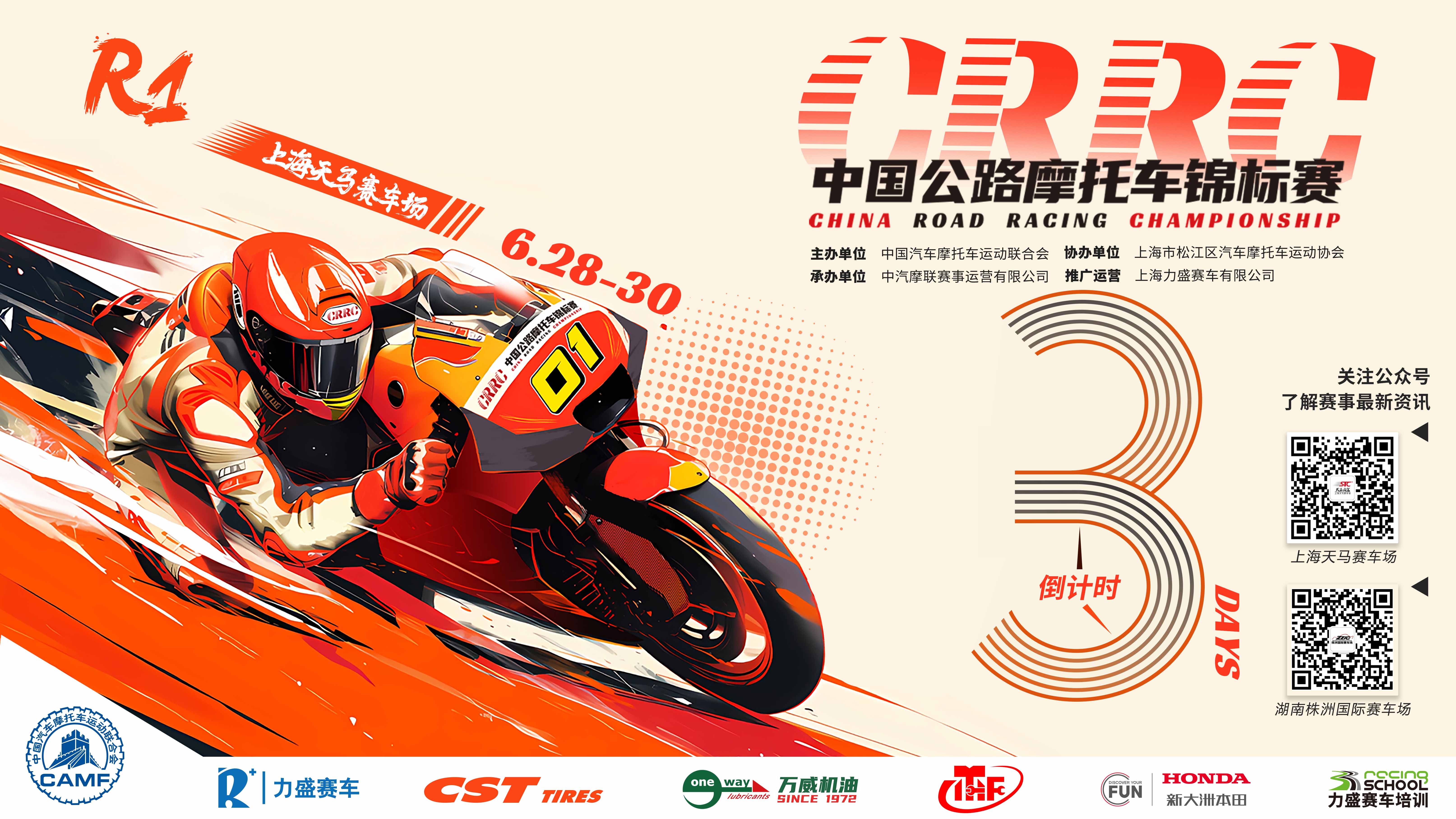 6月28日至30日,2024 CRRC中國公路摩托車錦標(biāo)賽即將在上海天馬賽車場熱力啟航,攜手多家知名品牌合作伙伴,與百余名參賽車手一同奔赴申城,火熱開戰(zhàn)。