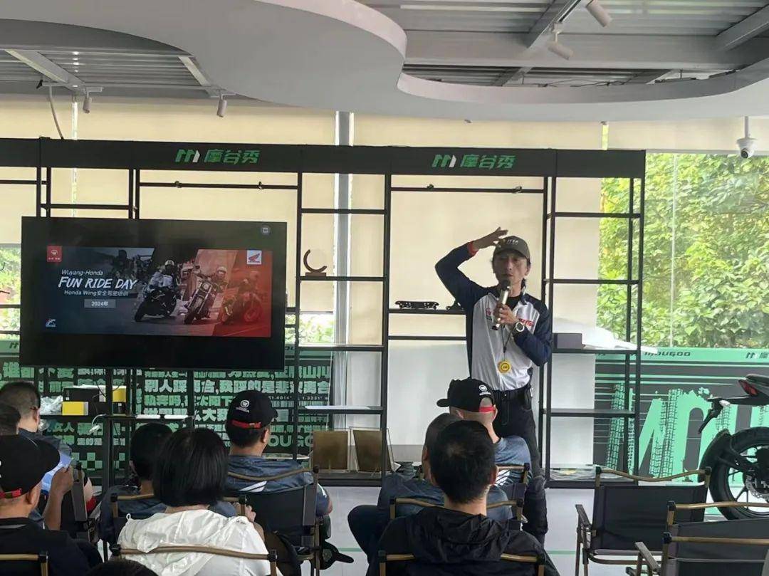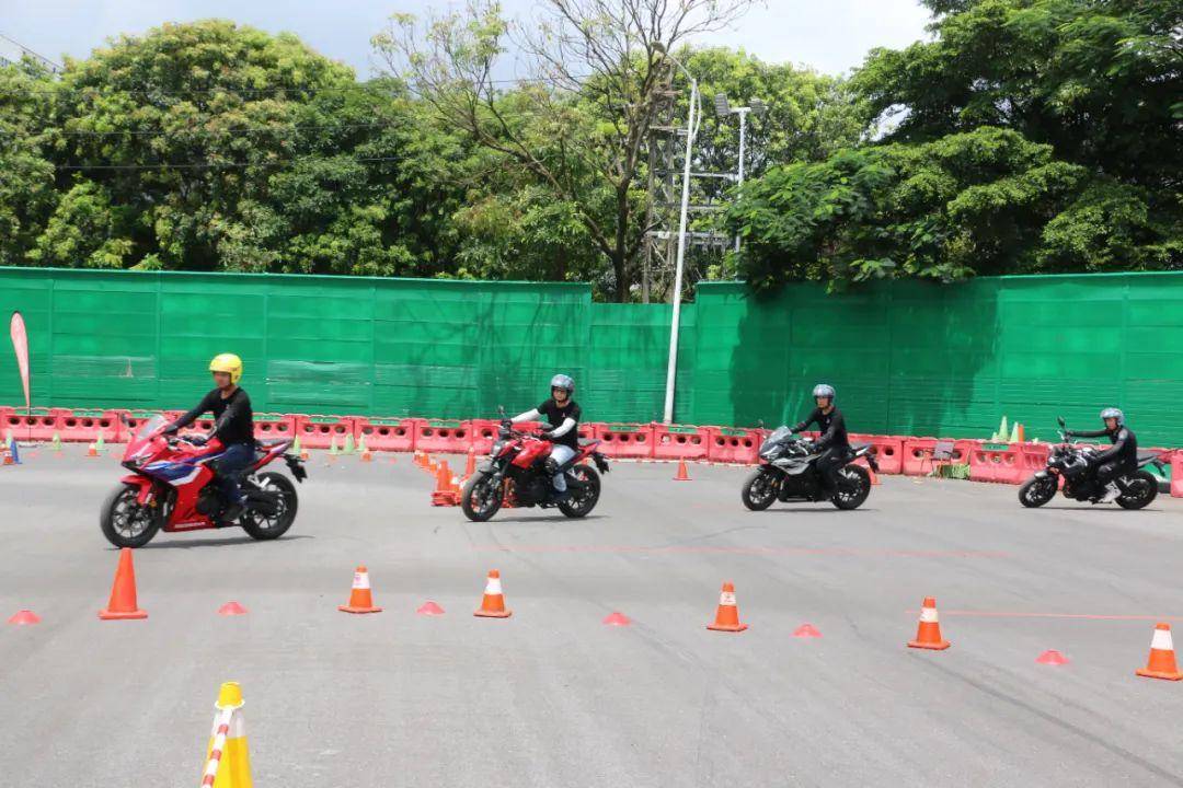 理論課程結(jié)束后,五羊-本田的安駕培訓(xùn)表演團(tuán)隊(duì)在主教練何建華的指揮下為大家?guī)?lái)了精彩的騎行表演,展示直線(xiàn)加減速、快速傾倒、蛇形繞樁、傾角回旋、左右大傾角翻轉(zhuǎn)等技巧