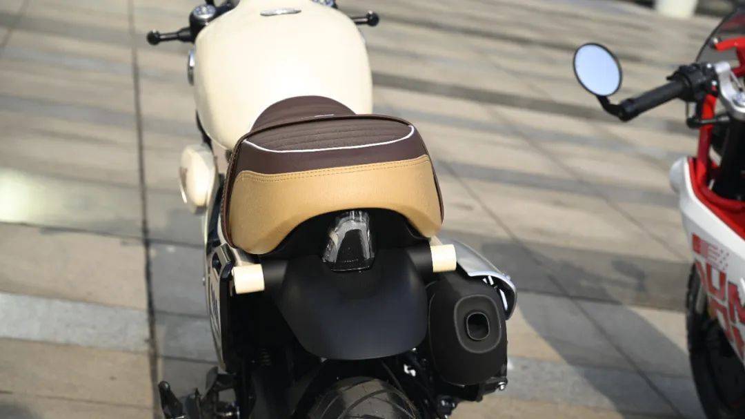 泡泡采用了大包圍的設(shè)計(jì),其設(shè)定更貼近于復(fù)古跑車的范疇。較低的分離式手把,配合兩側(cè)的手把后視鏡,騎行的姿態(tài)更為運(yùn)動化,配合前茶色風(fēng)擋,后駝峰座,注定是一臺單身快樂車,也適合追求特立獨(dú)行的小姐姐。