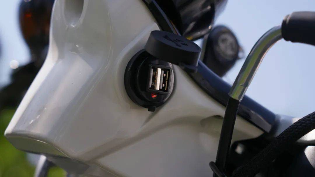 USB充電接口、油箱蓋也用巧思設(shè)計(jì),采用圓形液晶儀表,陽光直射也能清晰讀取。