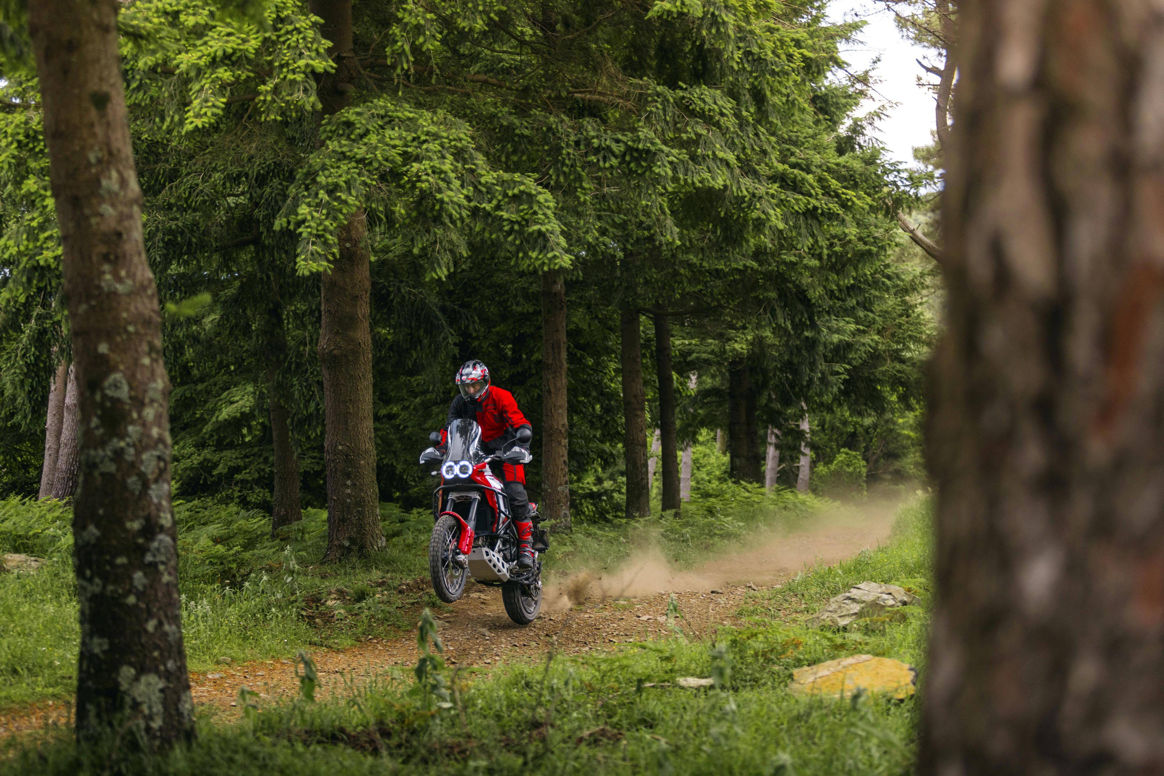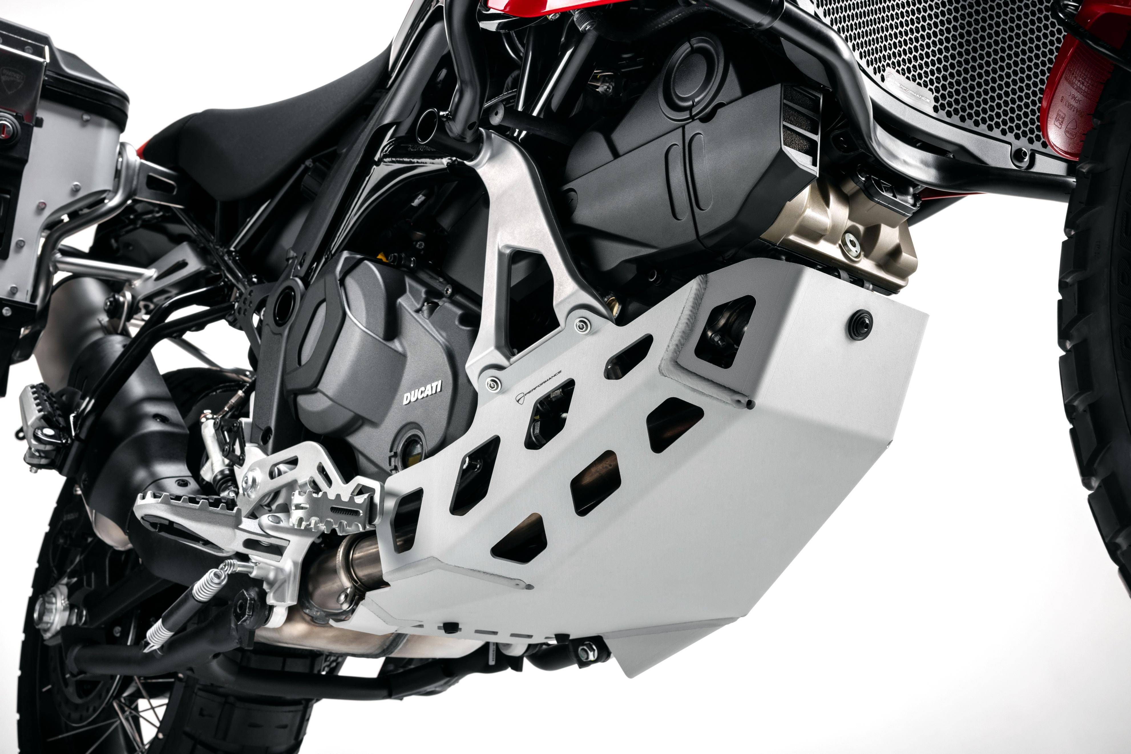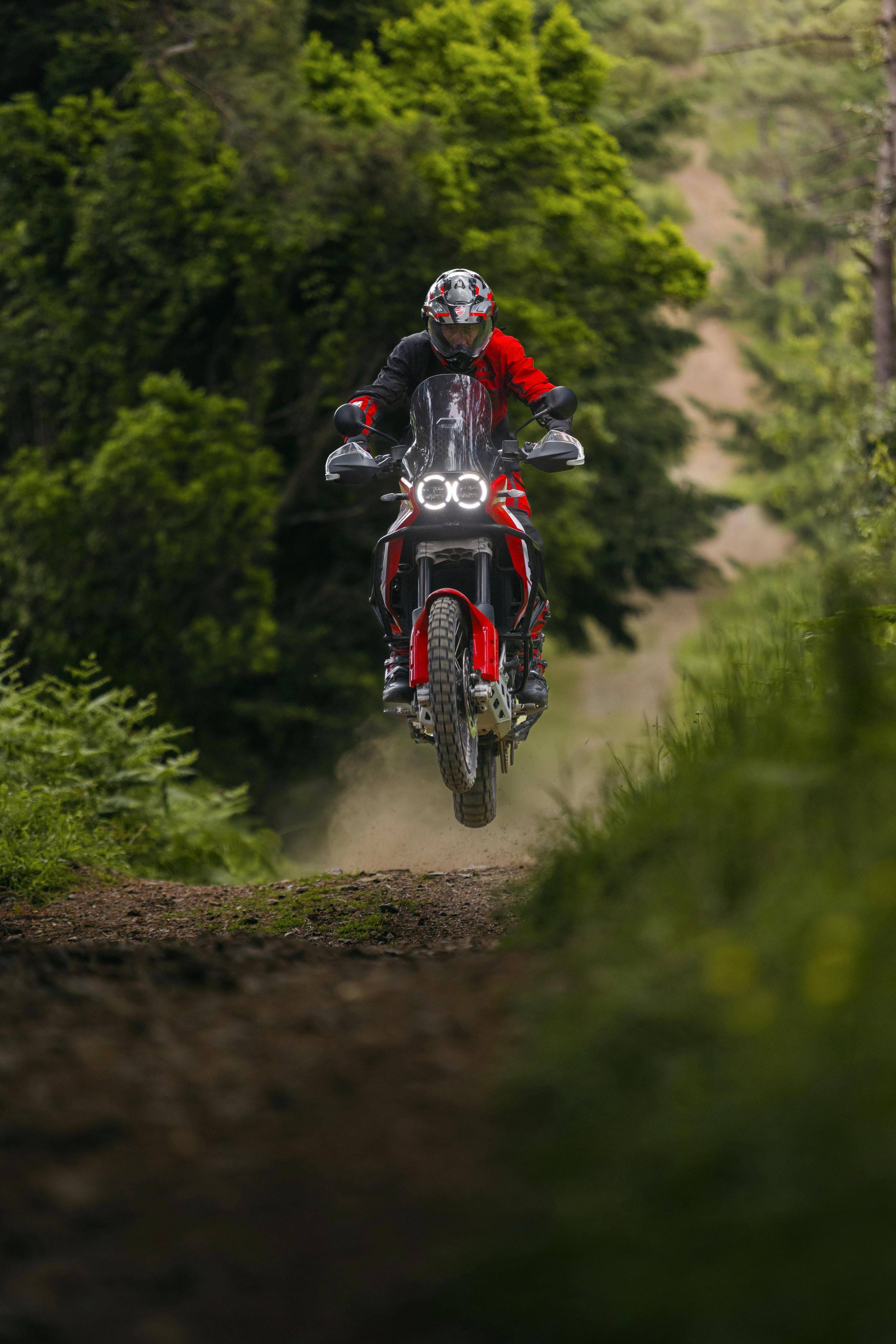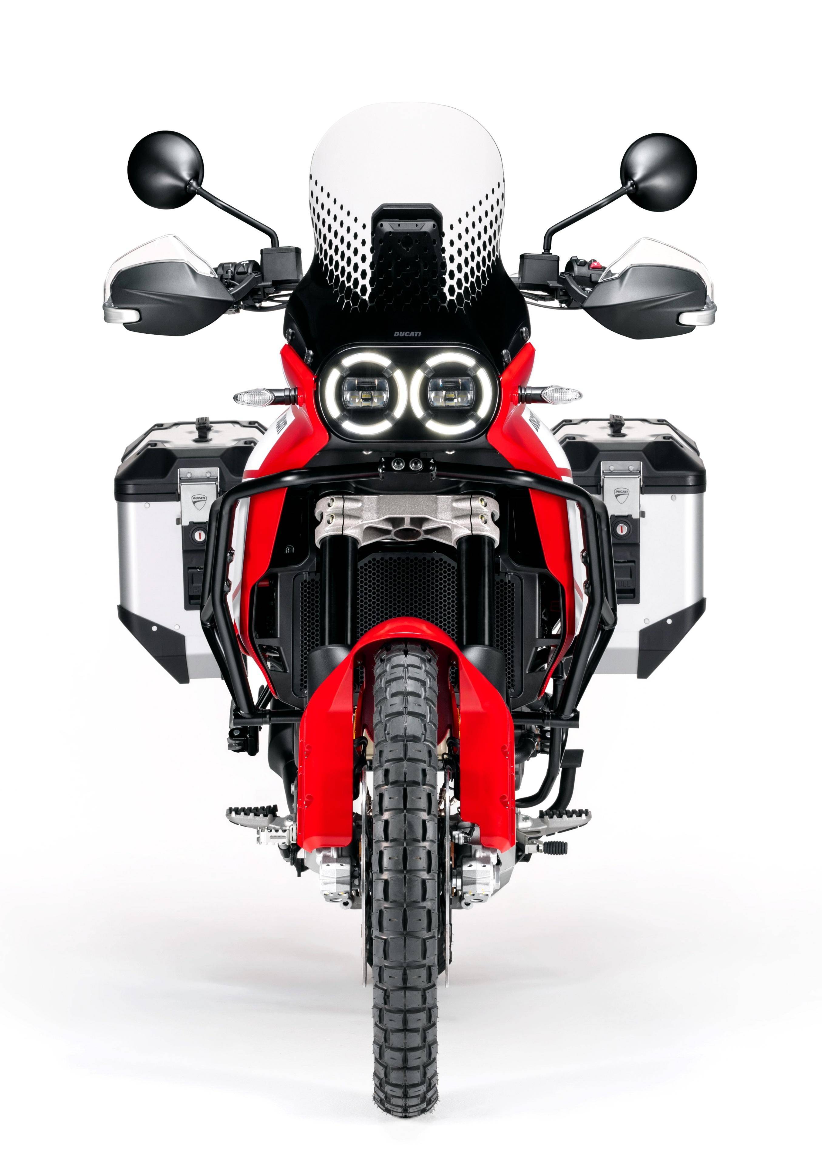 車體采用一副鋼管式的車架、鋁合金制的后搖臂;KYB 配套的懸掛系統(tǒng),前面是叉芯口徑 46 mm、行程為 230 mm 的倒立式前叉,后面是行程為 220 mm 的單減震;越野規(guī)格的前 21、后 18 英寸直徑的車輪;包括六種可選的騎行模式、四個(gè)動(dòng)力輸出模式可選,八個(gè)級(jí)別可調(diào)的 DTC 杜卡迪牽引力控制系統(tǒng),DWC 杜卡迪車輪控制系統(tǒng),DQS 快速換檔系統(tǒng),巡航控制,彎道 ABS 等多項(xiàng)的電子控制系統(tǒng)。
