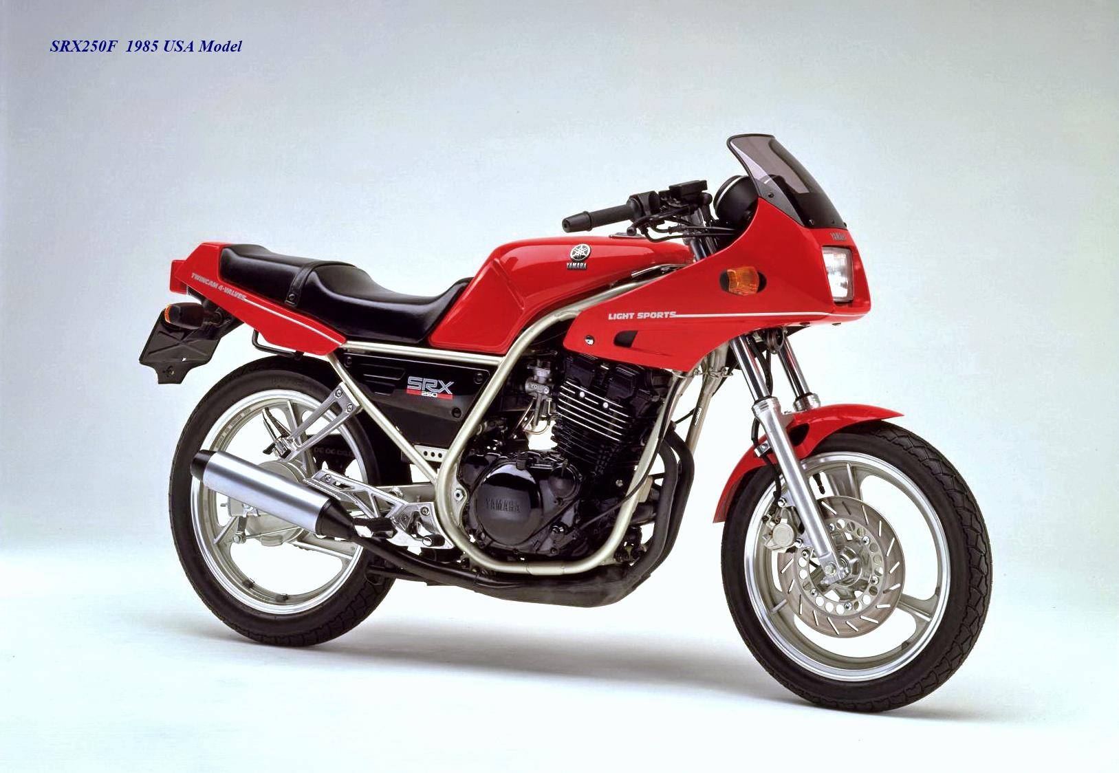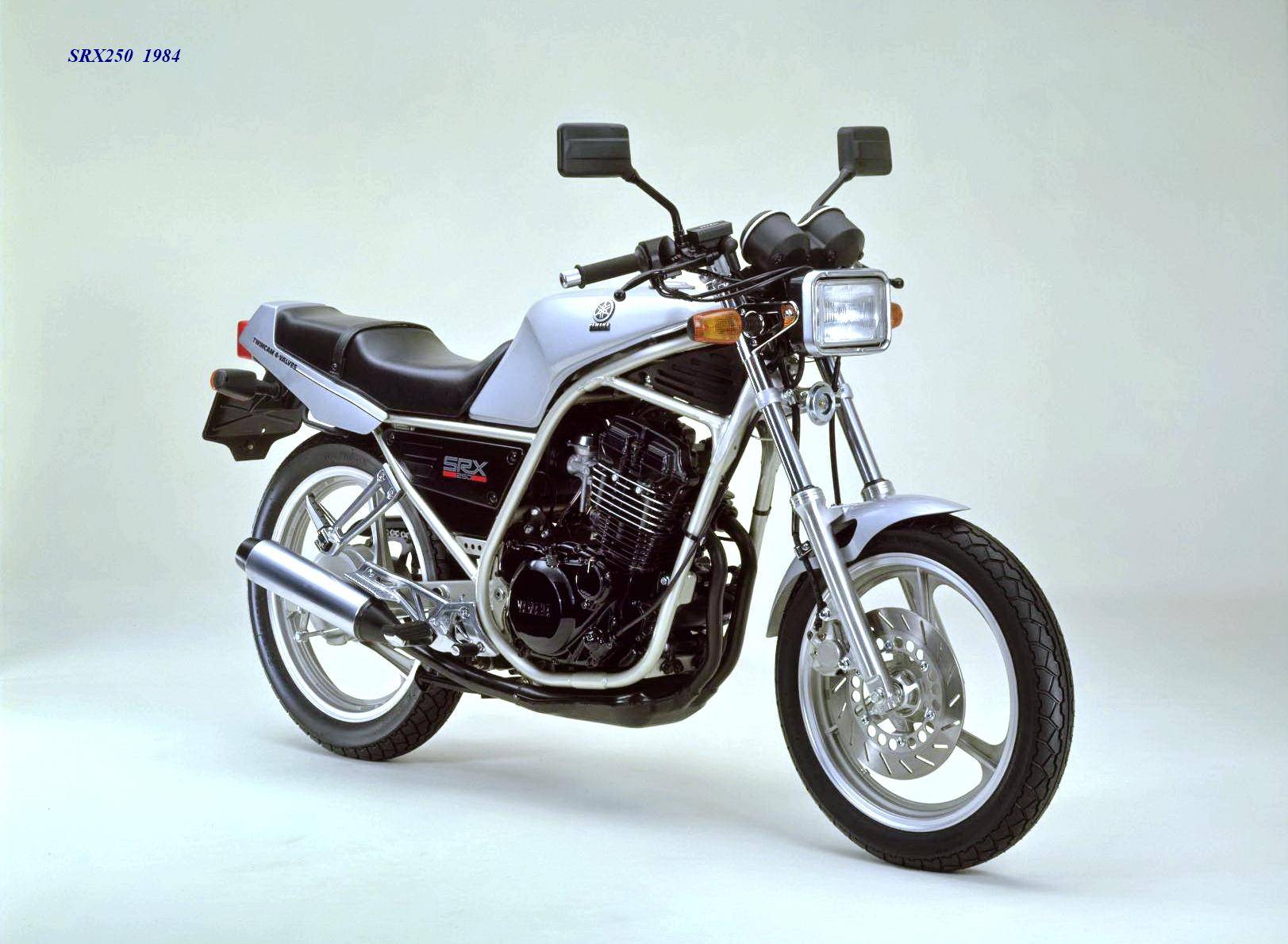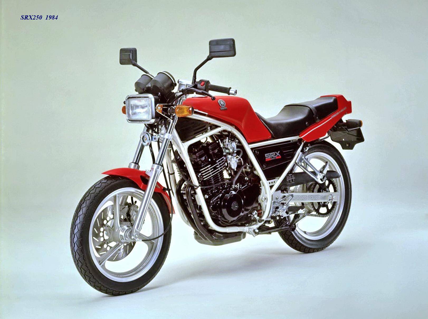作為應(yīng)對市場競爭的手段,Yamaha 在 1984 年首次推出了 SRX250(本土版的工廠編號為 5 IY/Y24PV)。該車搭載一副從越野車 XT250 的動力單元升級而來的風(fēng)冷四沖程單氣缸、DOHC 四氣閥的發(fā)動機(jī)(當(dāng)時的 XT250 采用 SOHC 兩氣閥的發(fā)動機(jī)),缸徑、行程為 73 mm x 59.6 mm,排氣量 249 cc,配備了 Yamaha 獨(dú)創(chuàng)的 Y.D.I.S(Yamaha Digital Intake System,Yamaha 數(shù)字式進(jìn)氣系統(tǒng),也就是每個進(jìn)氣的氣閥、都配備了對應(yīng)的進(jìn)氣通道和化油器,單氣缸、雙化油器)技術(shù),讓車輛在低轉(zhuǎn)速之下、依然有著極佳的油門響應(yīng);標(biāo)配了電啟動,六檔的變速齒輪箱,最大馬力輸出 32 匹。