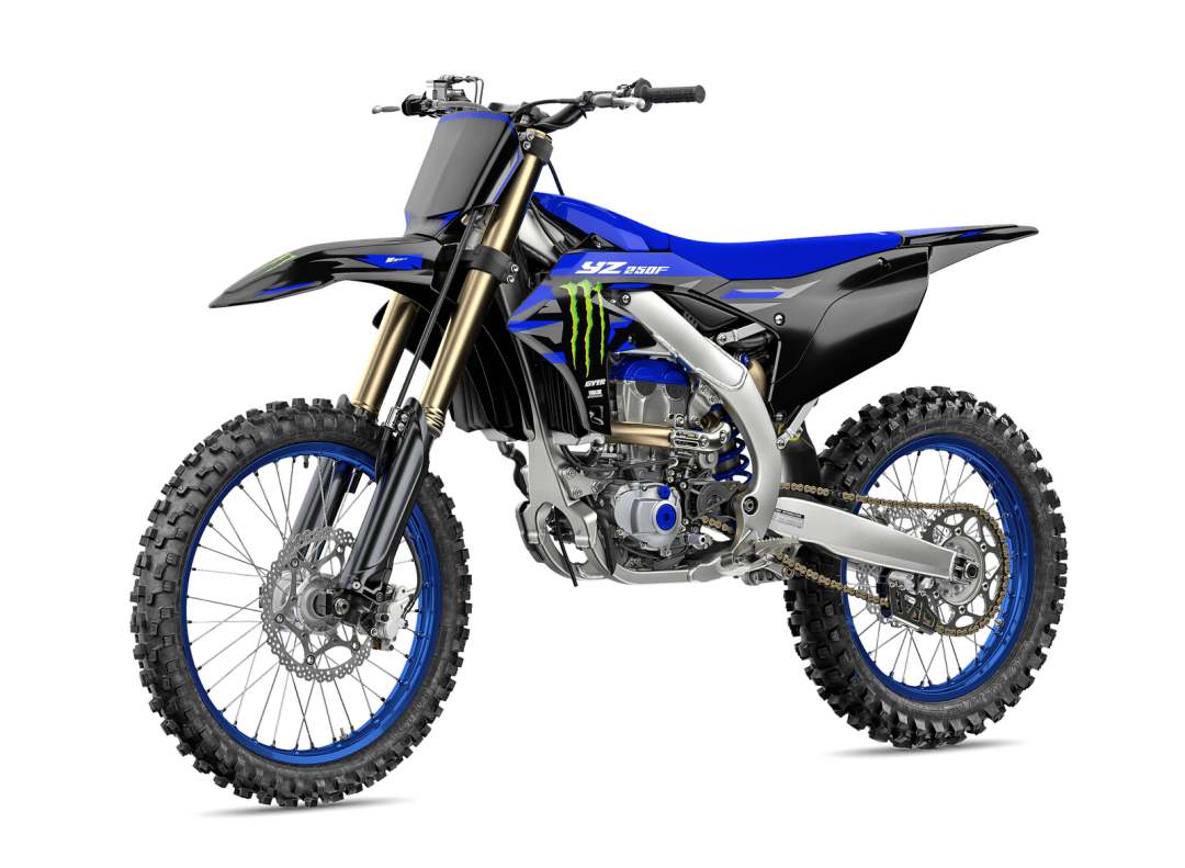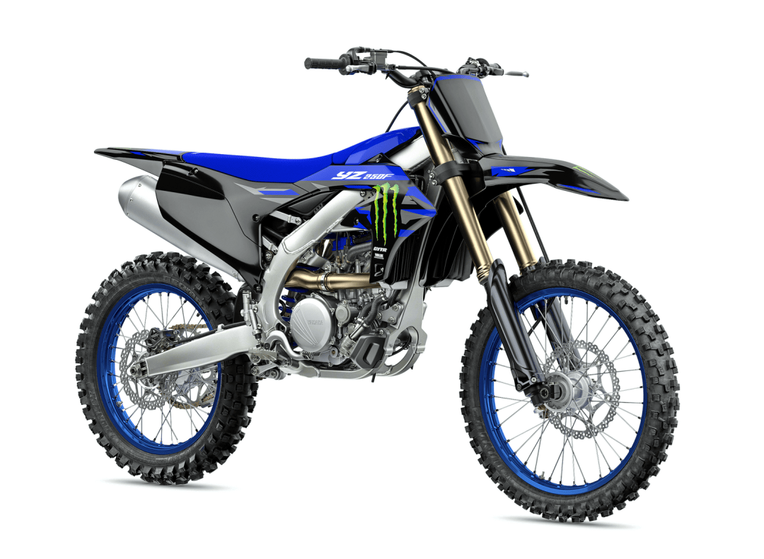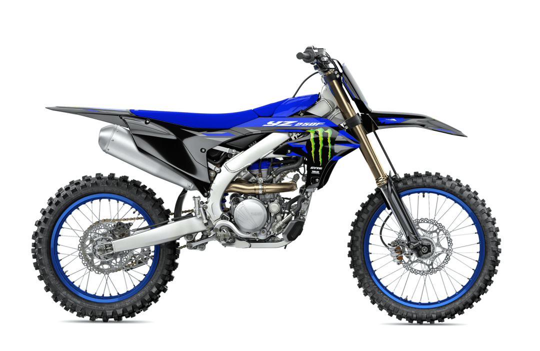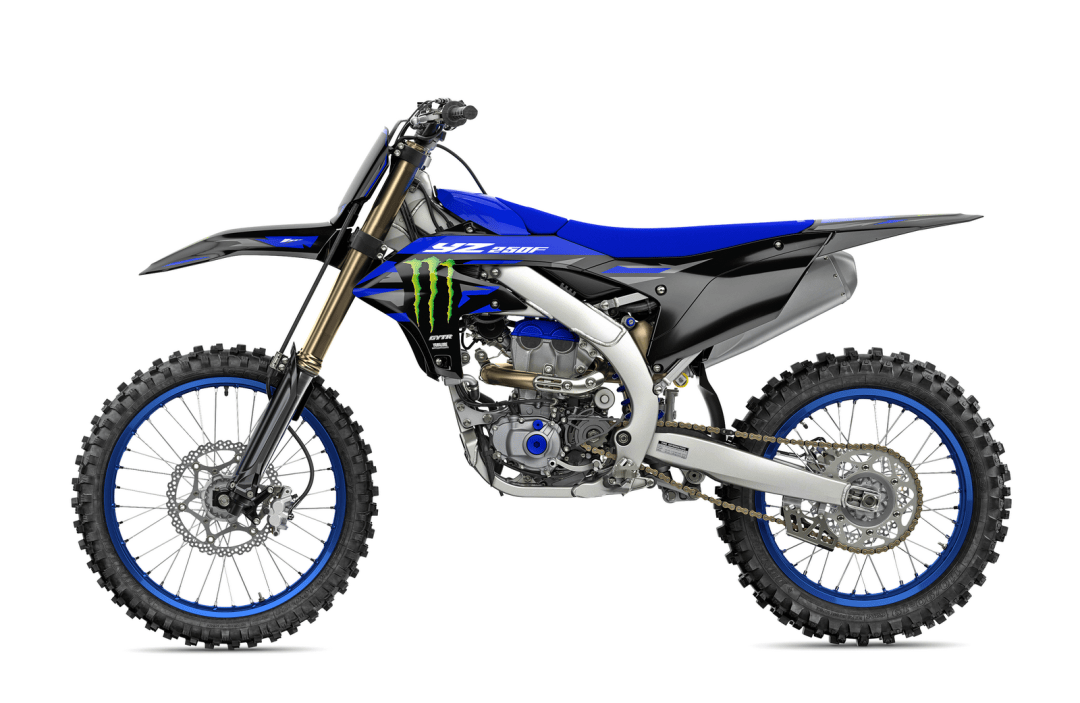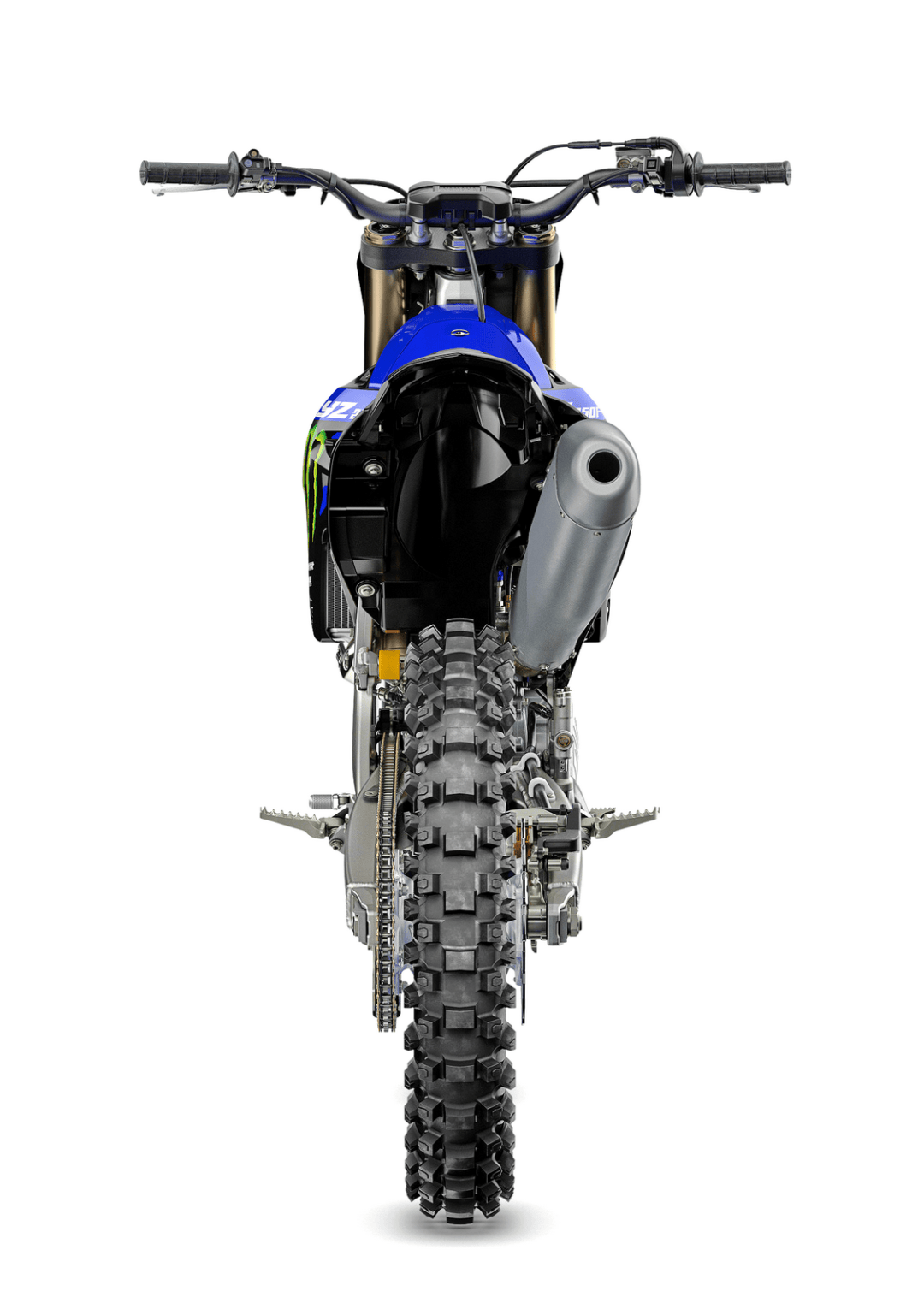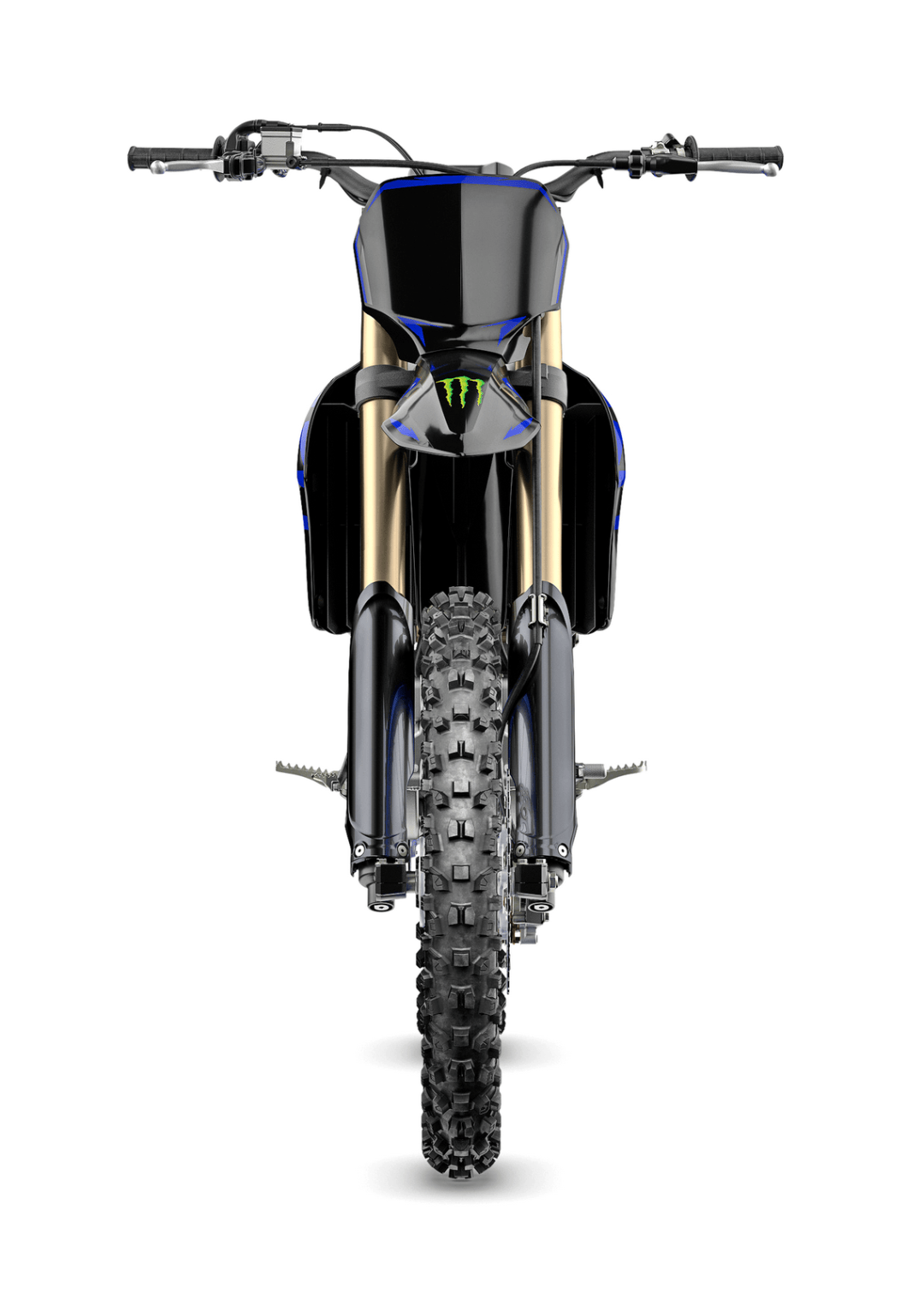下圖:采用了與 Yamaha MXGP 工廠賽車相同的 Monster Energy 圖案風(fēng)格的 2025 YZ250FSV。