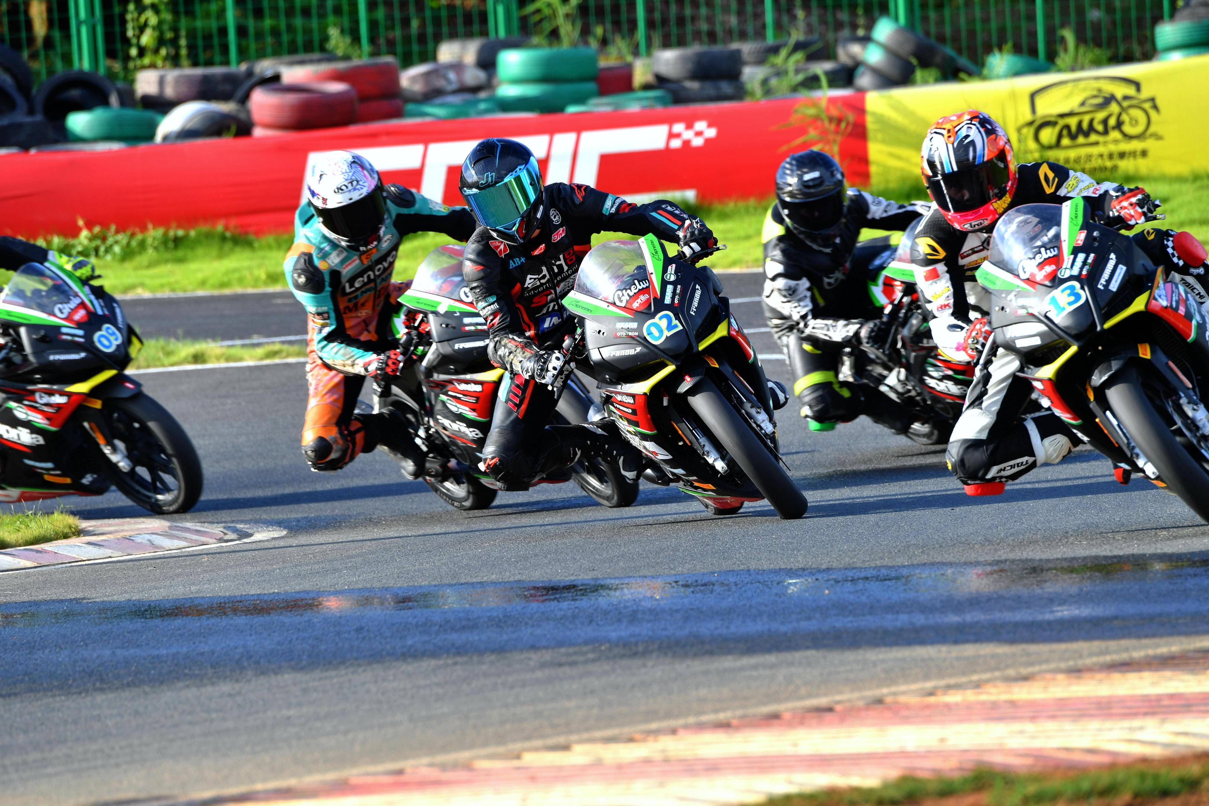 首屆的 GCIC 從化國際賽車場會賽,Aprilia GPR250R 統(tǒng)一組有十三位車手參加。賽前的排位賽,2 號車的溫職滔、13 號車的廖梓旭、9 號車的董晟豪占據(jù)了前三名的第一排發(fā)車位置。第一節(jié)的比賽,起步就取得領先位置的廖梓旭、在第 3 圈的 2 號彎滑倒,扶起賽車重新回到賽道時、已經(jīng)損失超過 30 秒的時間。最終,溫職滔順利奪得了第一節(jié)比賽的冠軍,董晟豪、6 號車的劉方輝分別拿到了亞軍、季軍。