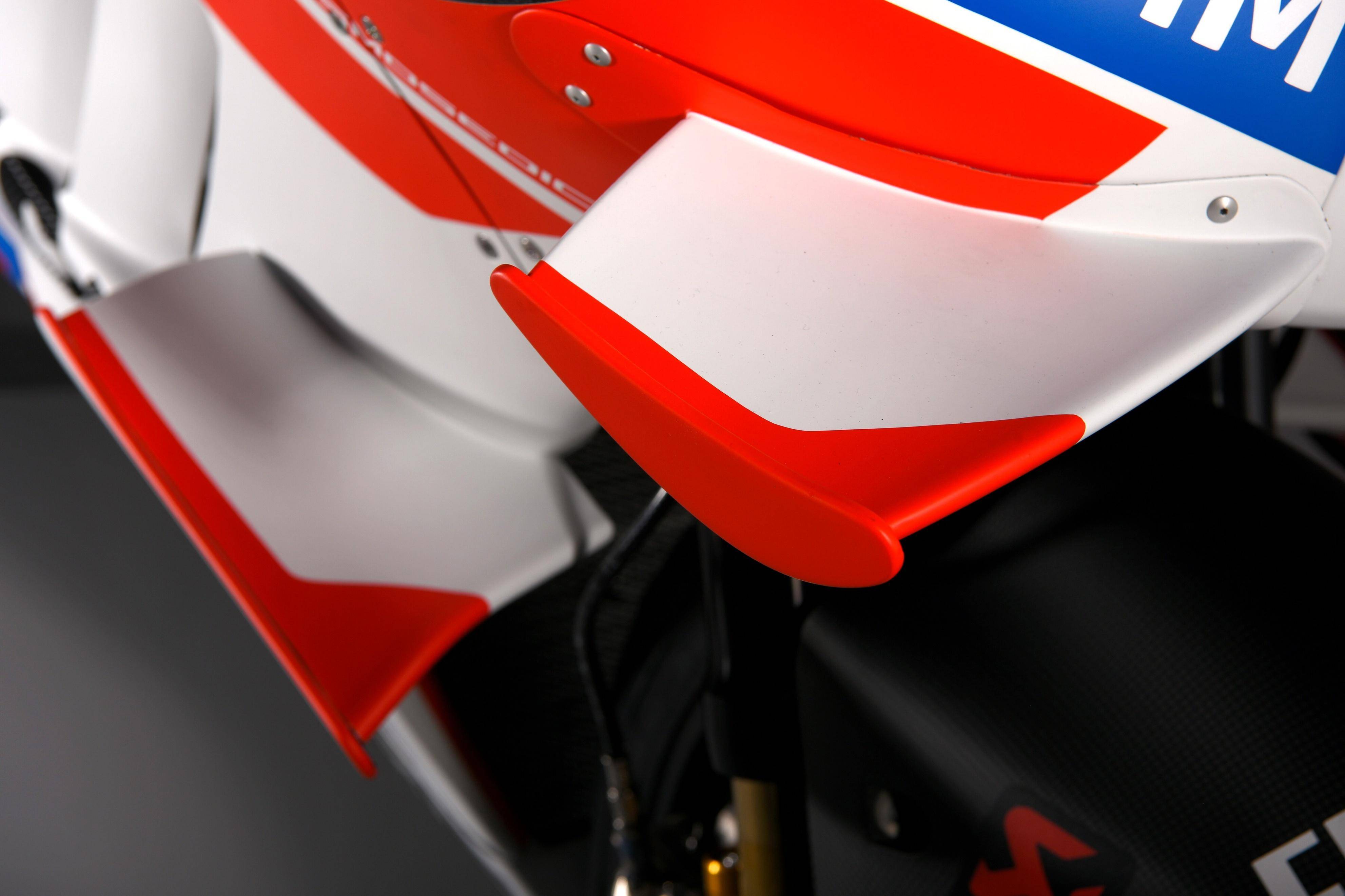 這樣的認知,核心原因是通過賽車開發(fā)出來的新技術(shù)、并非馬上見效地應(yīng)用到市售的可上牌量產(chǎn)車身上,它有著一個潛移默化的過程:自以為見多識廣、見慣了世面的自己,2016 年的 MotoGP 賽車開始加裝空氣動力學(xué)套件的時候,我也覺得這樣的設(shè)計、破壞了賽車/跑車原有的流線造型,讓整體風(fēng)格變得不再平滑,個人定義是一個很丑的模樣。但時至今日,一款量產(chǎn)跑車,沒有空氣動力學(xué)組件(直接的描述也就是定風(fēng)翼),幾乎可以肯定、這是不符合大部分消費者的外觀審美的,標配定風(fēng)翼的設(shè)計、已經(jīng)是量產(chǎn)跑車里的主潮流。