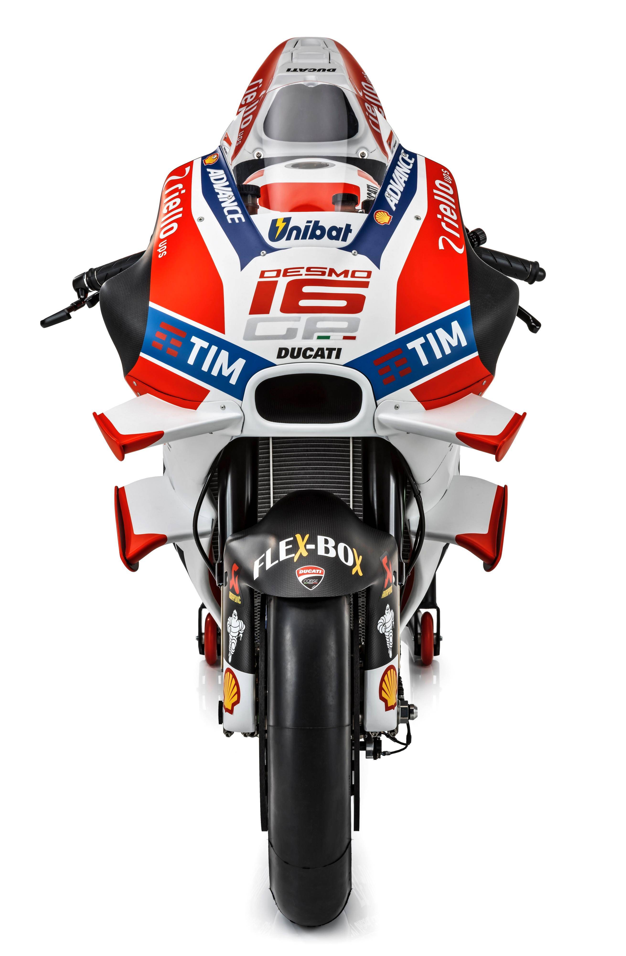 下面的圖片,Ducati 杜卡迪的 2016 Desmosedici GP16 工廠賽場(資料圖片)。