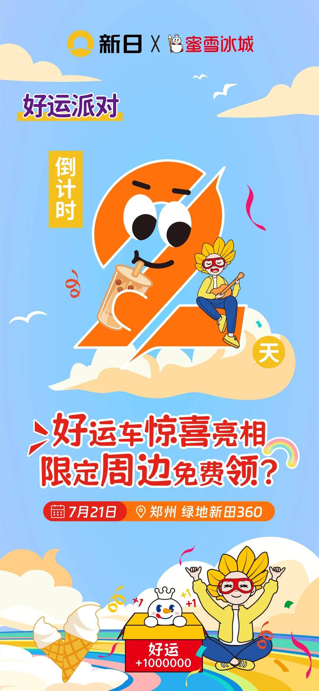 伴隨著這波滔天巨浪般的龐大流量,新日與蜜雪冰城的第一次夢幻聯(lián)動也即將震撼揭幕!7月21日,新日將與蜜雪冰城強(qiáng)強(qiáng)聯(lián)手,在“雪王”故鄉(xiāng)河南鄭州的綠地新田360廣場,開啟一場精彩絕倫的“好運派對”,夏日狂歡、好運連連、引爆全城!