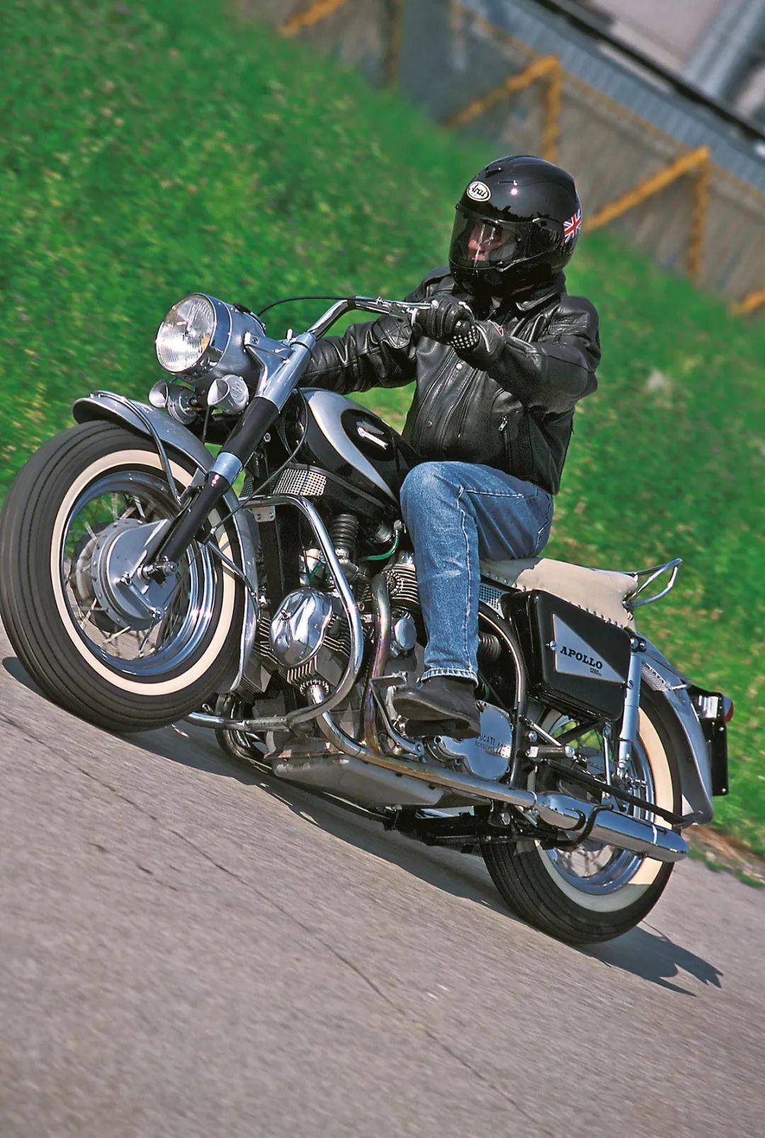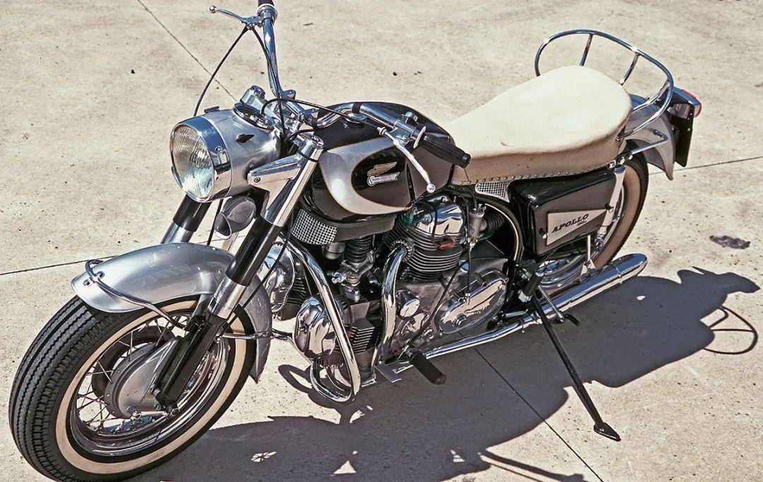 最終研發(fā)出來(lái)的“阿波羅”擁有強(qiáng)大的實(shí)力。V型四缸發(fā)動(dòng)機(jī)性能不俗,可在轉(zhuǎn)速7000r/min時(shí)輸出75kW,而同級(jí)別的哈雷只有區(qū)區(qū)41kW,優(yōu)勢(shì)實(shí)在太明顯了。車(chē)架方面,采用了雙鋼管車(chē)架,大塊頭V4發(fā)動(dòng)機(jī)作為車(chē)架的有機(jī)組成部分,再加上出色的懸掛系統(tǒng),從而獲得了比哈雷更好的操控性能。更強(qiáng)的動(dòng)力,更出色的車(chē)架,意味著更快的奔跑速度,“阿波羅”極速可以超過(guò)200km/h。這在當(dāng)時(shí)是令人震驚的性能,Apollo 1260被認(rèn)為是二戰(zhàn)之后歐洲生產(chǎn)的最強(qiáng)性能摩托車(chē)。