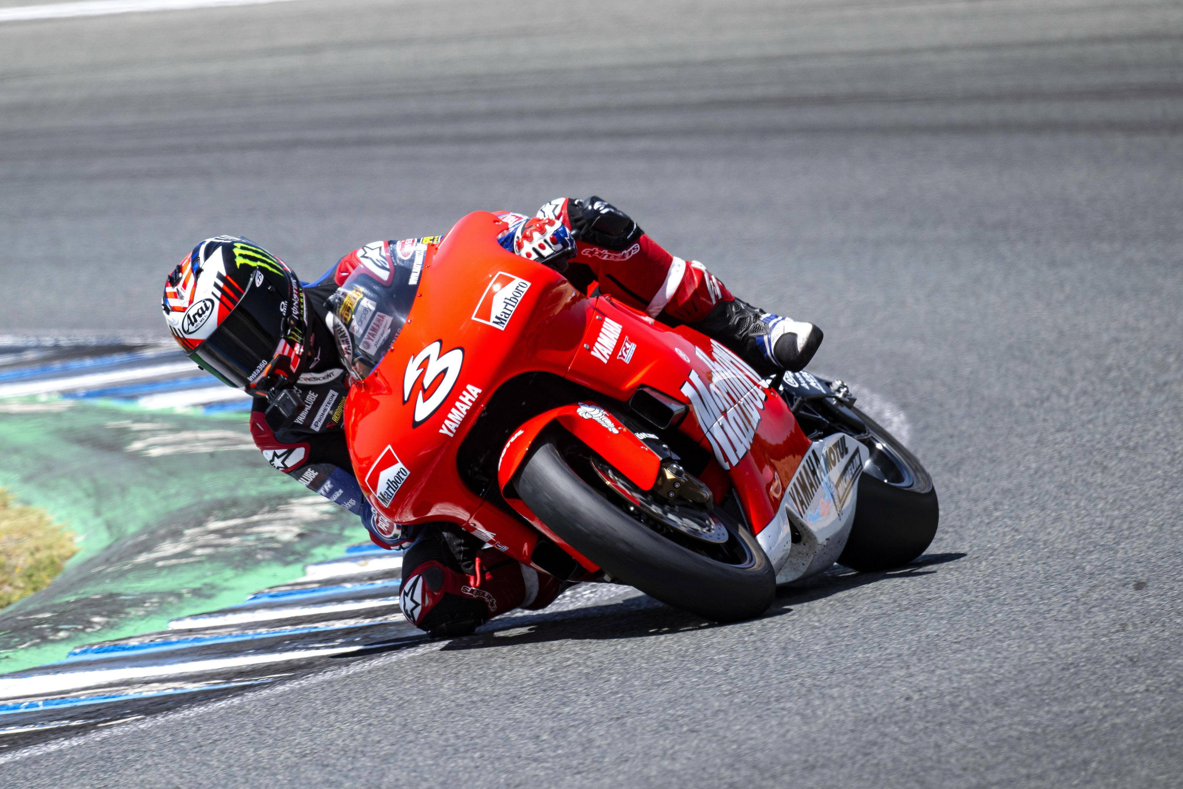 活動(dòng)的現(xiàn)場(chǎng),Yamaha 把過去幾十年來(lái)、很多標(biāo)志性兩沖程賽車帶到了捷雷斯,其中包括了拿到了 1986 世界冠軍的 0W81 YZR500、1987 年度亞軍的 8W86 YZR500,卡達(dá)羅拉拿到 1990 年 WGP250 年度季軍的 YZR250 0WB9(當(dāng)時(shí)的冠軍是他的 Yamaha 隊(duì)友 John Kocinski 科辛斯基)。除了這些正式的工廠賽車之外,現(xiàn)場(chǎng)還有多臺(tái)復(fù)制版的賽車:采用了當(dāng)年比亞基 3 號(hào)車圖案的 2001 YZR500 0WL6 復(fù)制版,采用了當(dāng)初世界大賽內(nèi)車隊(duì)圖案的 1977 TZ750D、YZR750 和 1978 YZR750 等。