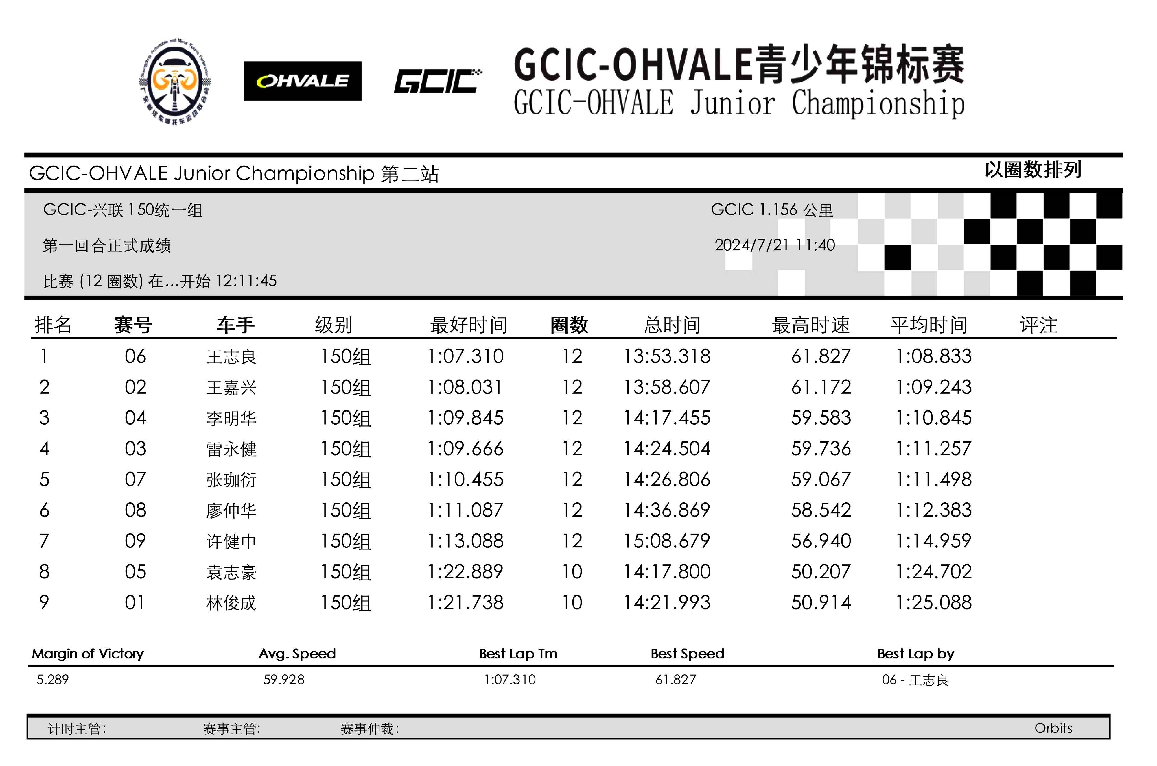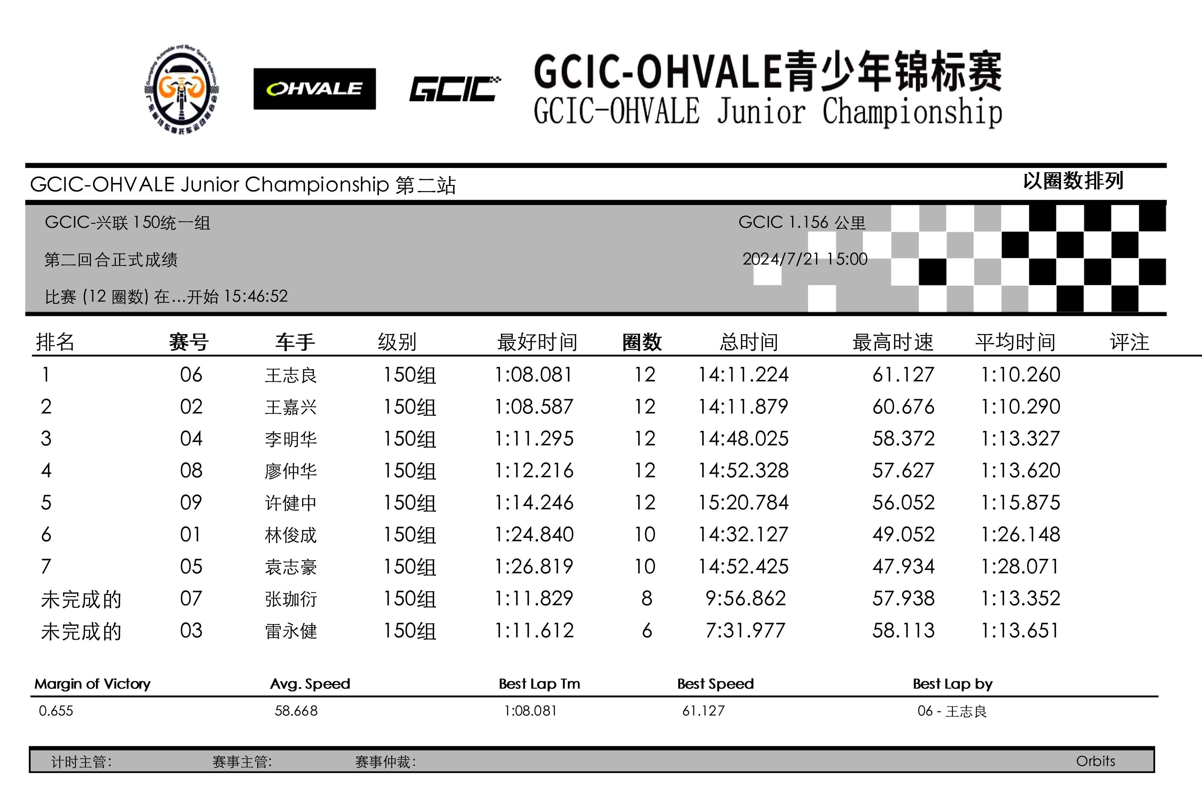 注:GCIC 會賽興聯(lián) 150 統(tǒng)一組,計算最后名次的規(guī)則、是依據(jù)兩節(jié)正式比賽之后的綜合成績。