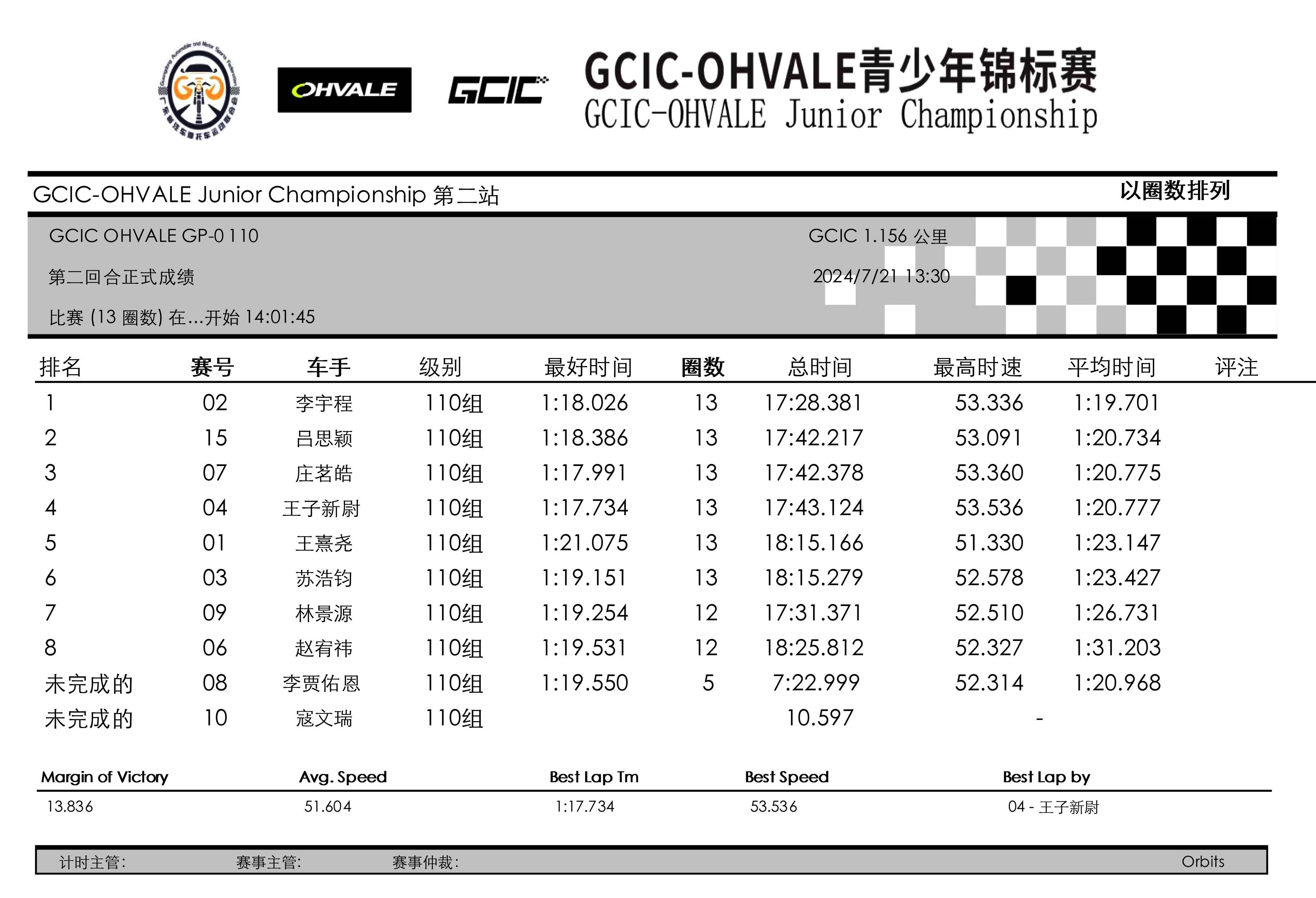 2、Ohvale GP-0 110 組(四檔):1 分 01.236 秒,陳司航;