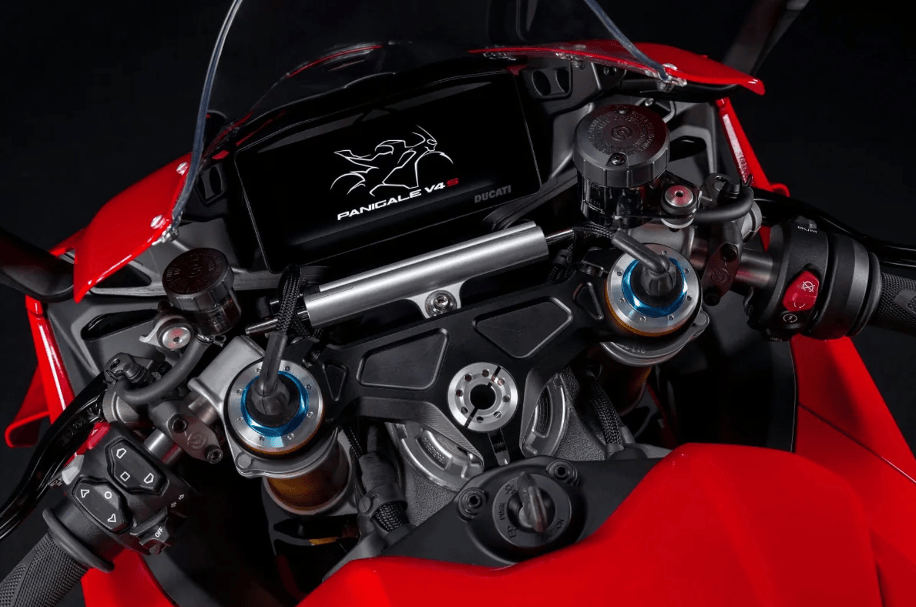 Panigale V4配備了完全可調(diào)的Showa倒立式前叉和全可調(diào)的Sachs后減震,轉(zhuǎn)向阻尼器為Sachs品牌。而Panigale V4 S則更進一步,采用了Öhlins第三代電子減震,配備NPX-30倒立式前叉和TTX36后減震,以及Öhlins的轉(zhuǎn)向阻尼器,為駕駛者提供更加精準的操控體驗。