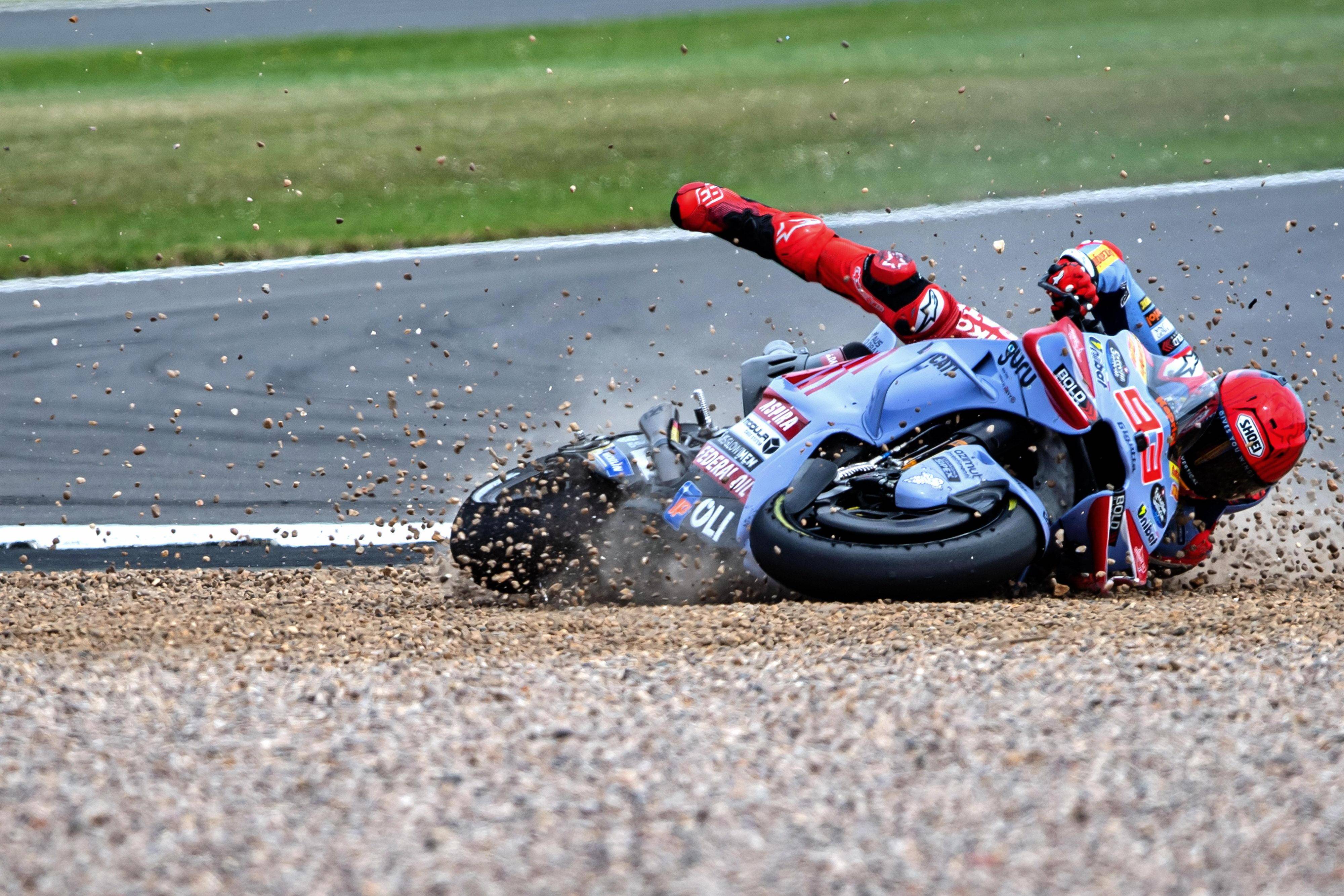 周末當(dāng)?shù)貢r(shí)間兩點(diǎn)多開始的沖刺賽,賽程為 10 圈、折合 59 公里。比賽的初段,馬昆斯就展現(xiàn)出快速的節(jié)奏,在連續(xù)超越了多位對(duì)手之后,到完成第 5 圈比賽時(shí)、他的位置上升到了第四;隨后的幾圈比賽里,他呈獨(dú)自在跑的狀態(tài):與領(lǐng)先集團(tuán)的距離已經(jīng)有 3 秒多、很難追回了,后面的對(duì)手則有大約 1 秒的 “ 安全距離 ”、暫時(shí)沒有直接的威脅。但到了比賽尾聲的第 8 圈,他在 16 號(hào)彎摔倒,隨后被迫退出了比賽。