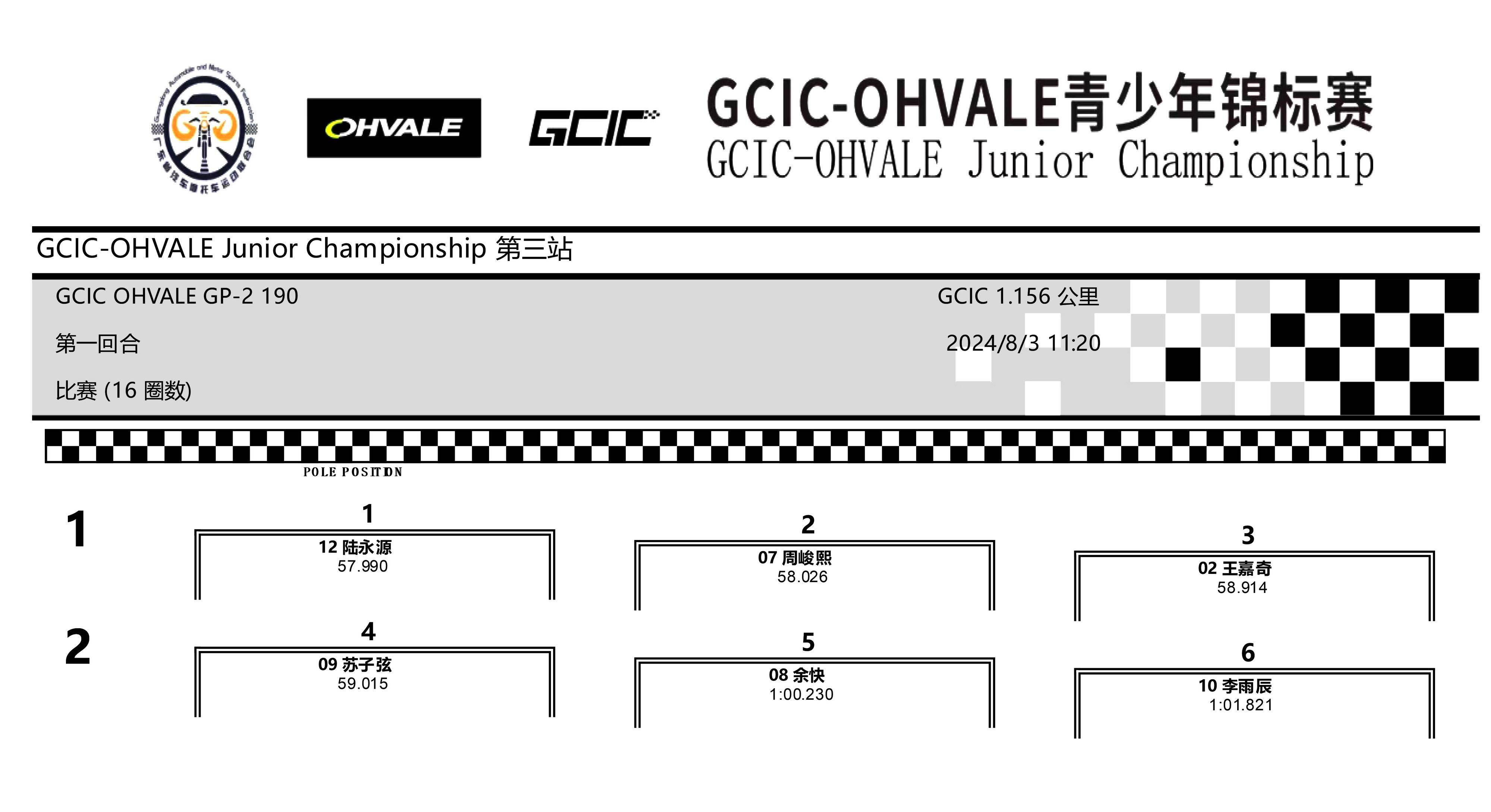 4、Ohvale GP-2 190 組:55.85 秒,伊凡(Qabil Irfan Bin Azlan),馬來西亞;中國車手 57.029 秒,龍俊豪;