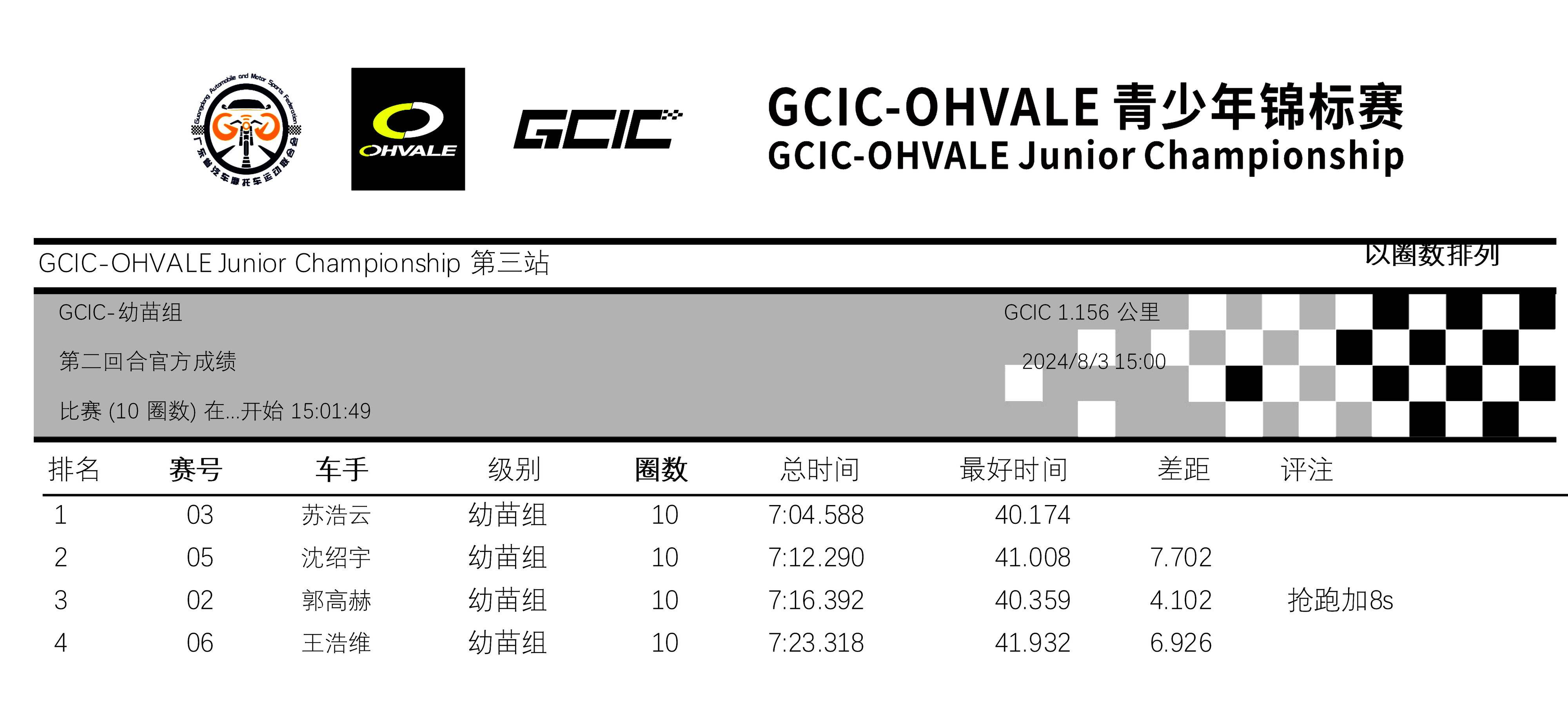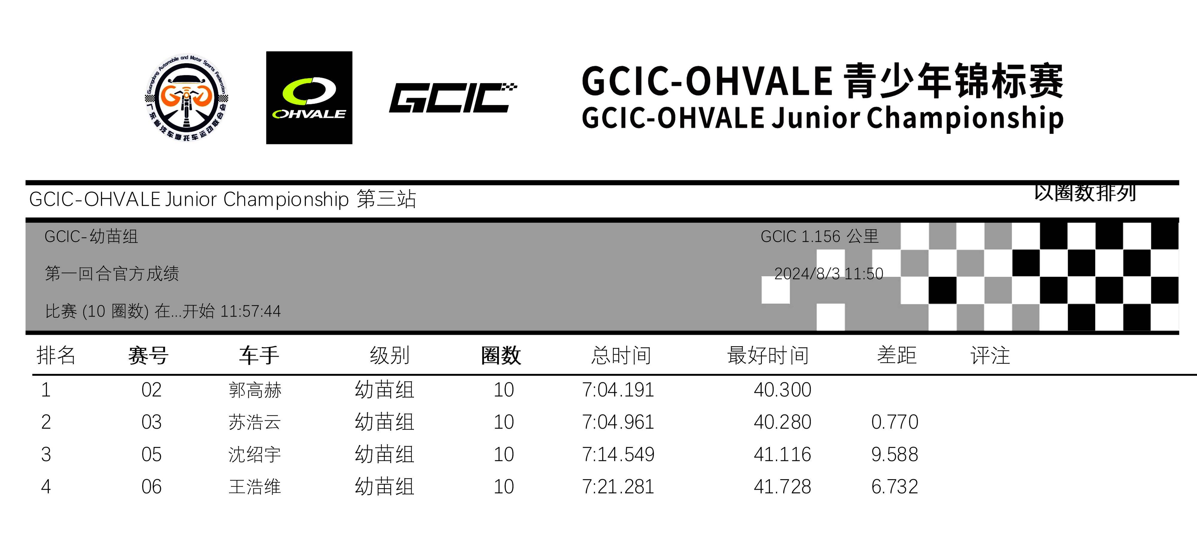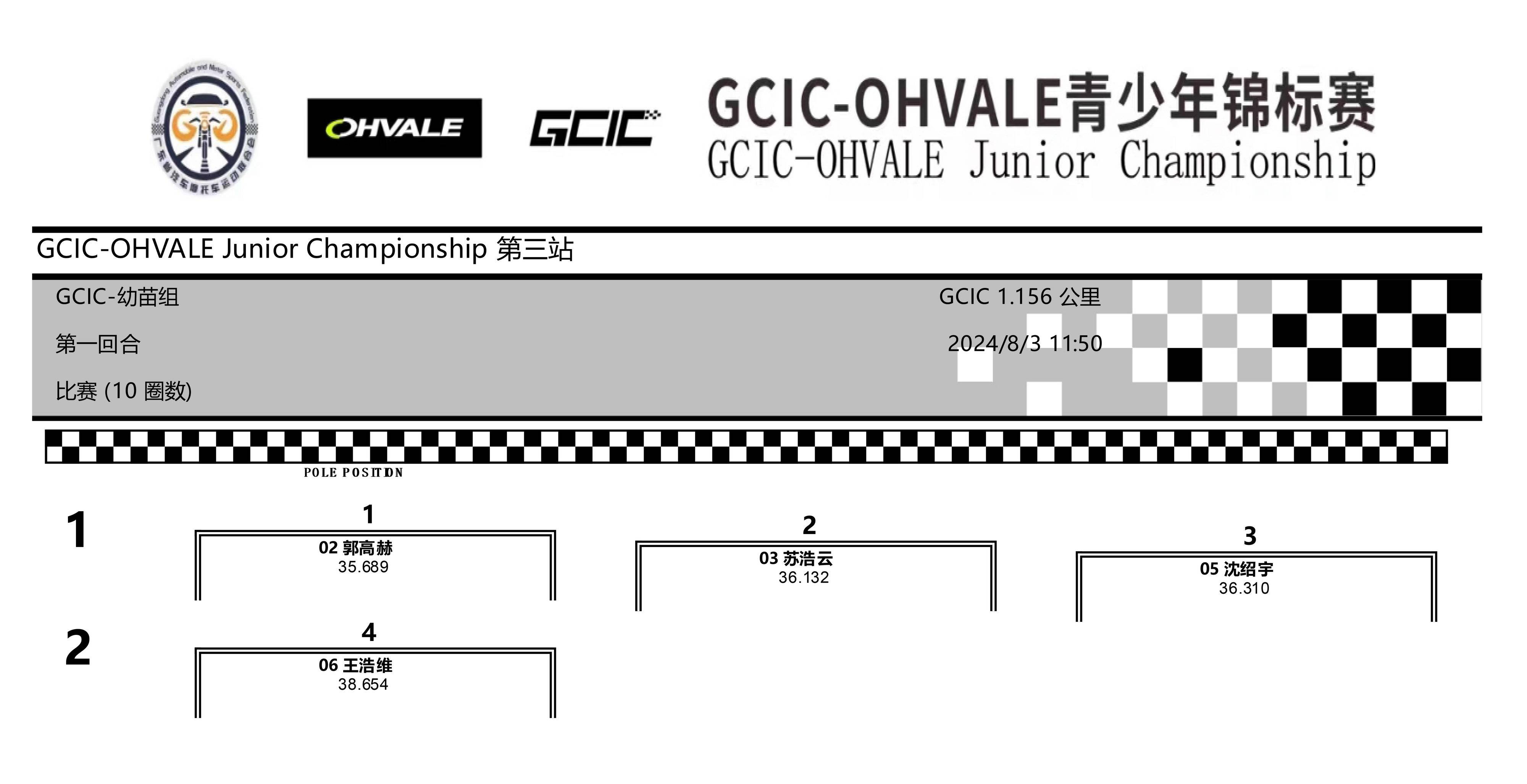 GCIC 會賽、幼苗組,從上一場的第二站比賽開始、采用了半場賽道的形式,駕駛 2 號車的郭高赫、在排位賽刷出了 35.689 秒的最佳圈速,比第二站比賽時(shí)的 39.878 秒時(shí)間、有了大幅的提升。