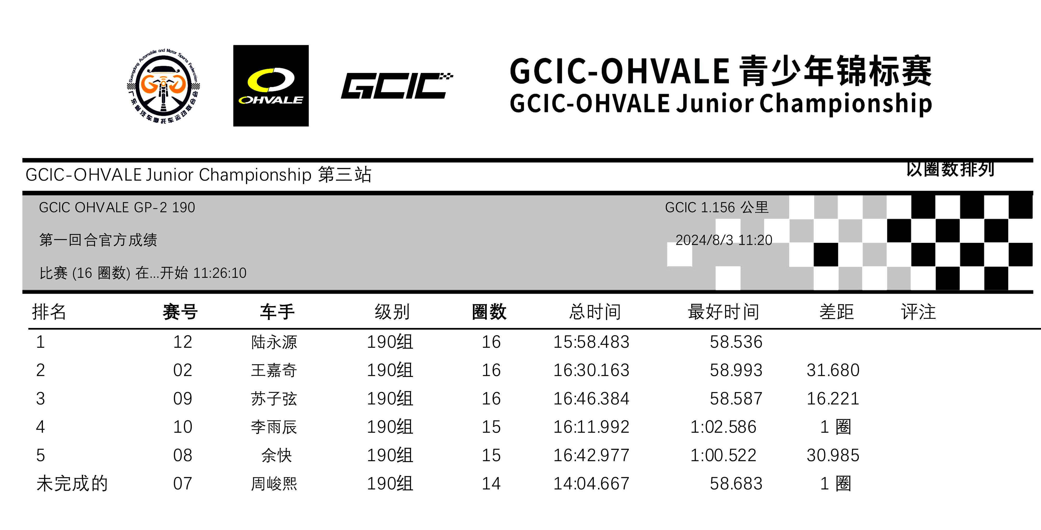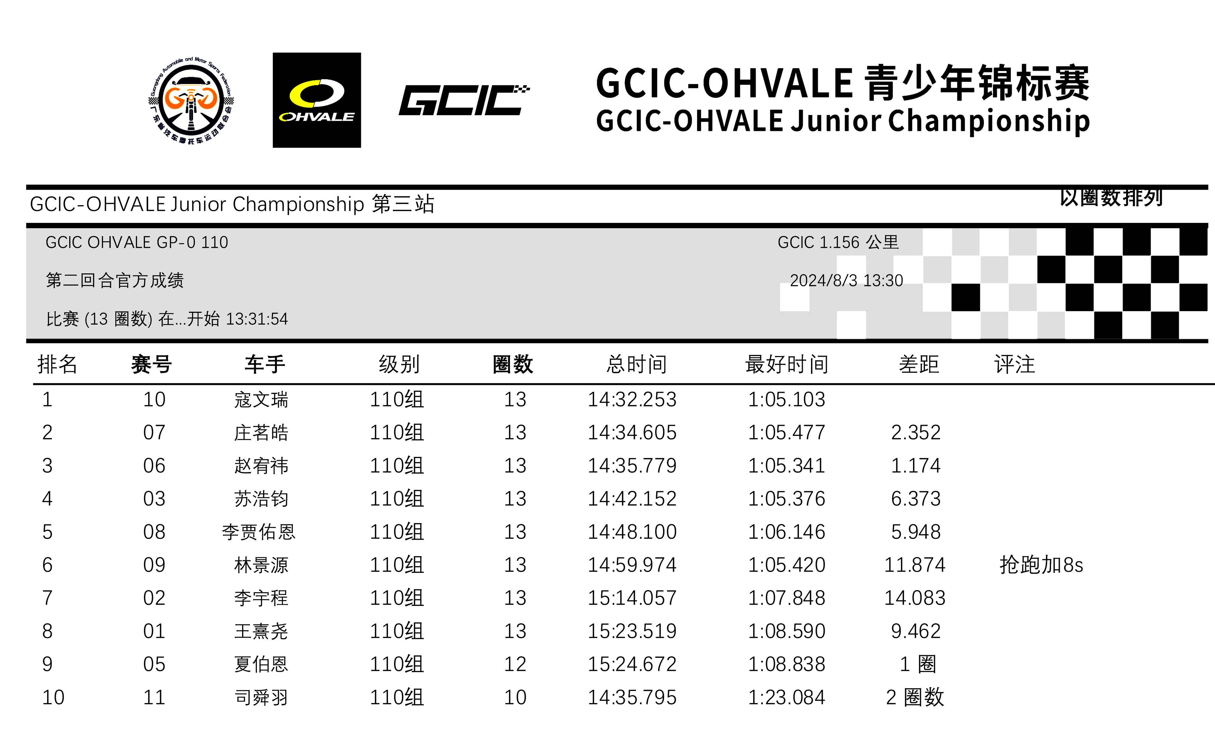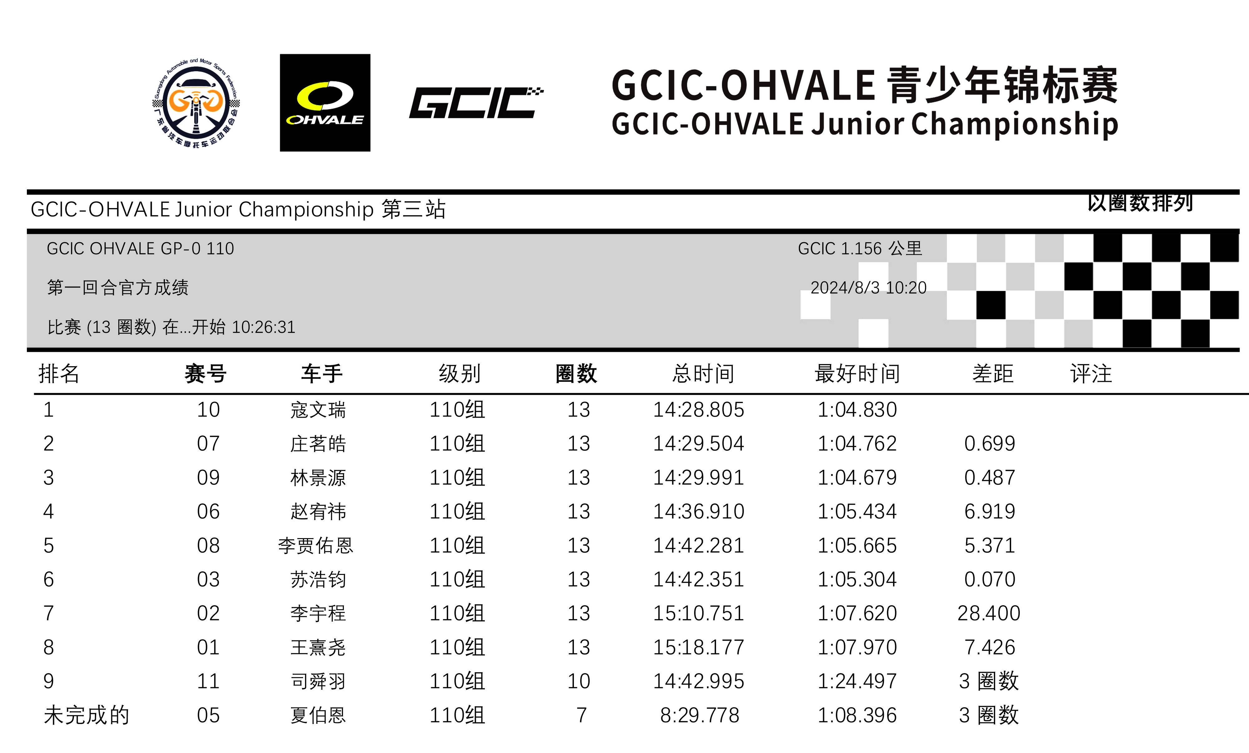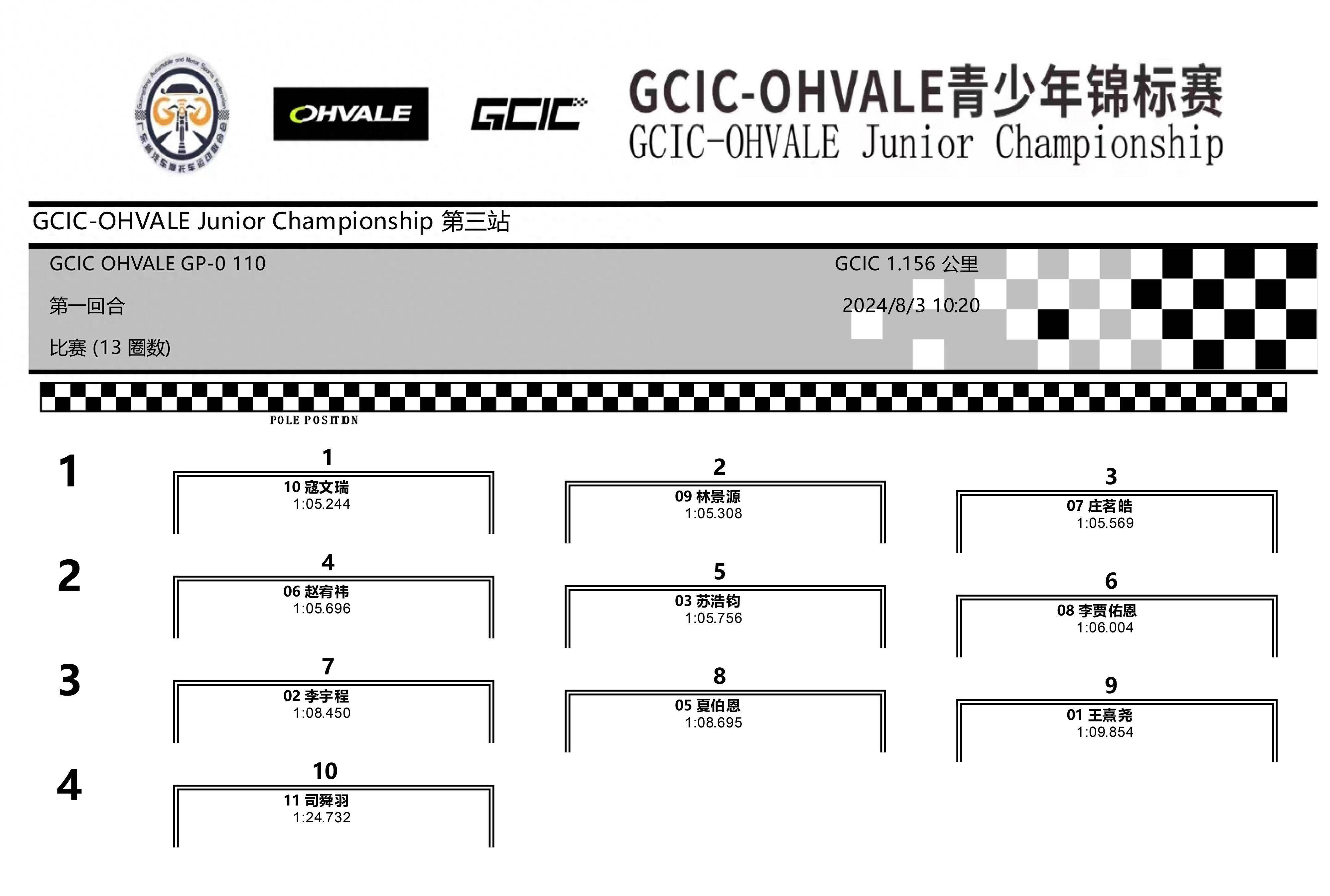 GCIC 會賽、幼苗組,從上一場的第二站比賽開始、采用了半場賽道的形式,駕駛 2 號車的郭高赫、在排位賽刷出了 35.689 秒的最佳圈速,比第二站比賽時(shí)的 39.878 秒時(shí)間、有了大幅的提升。