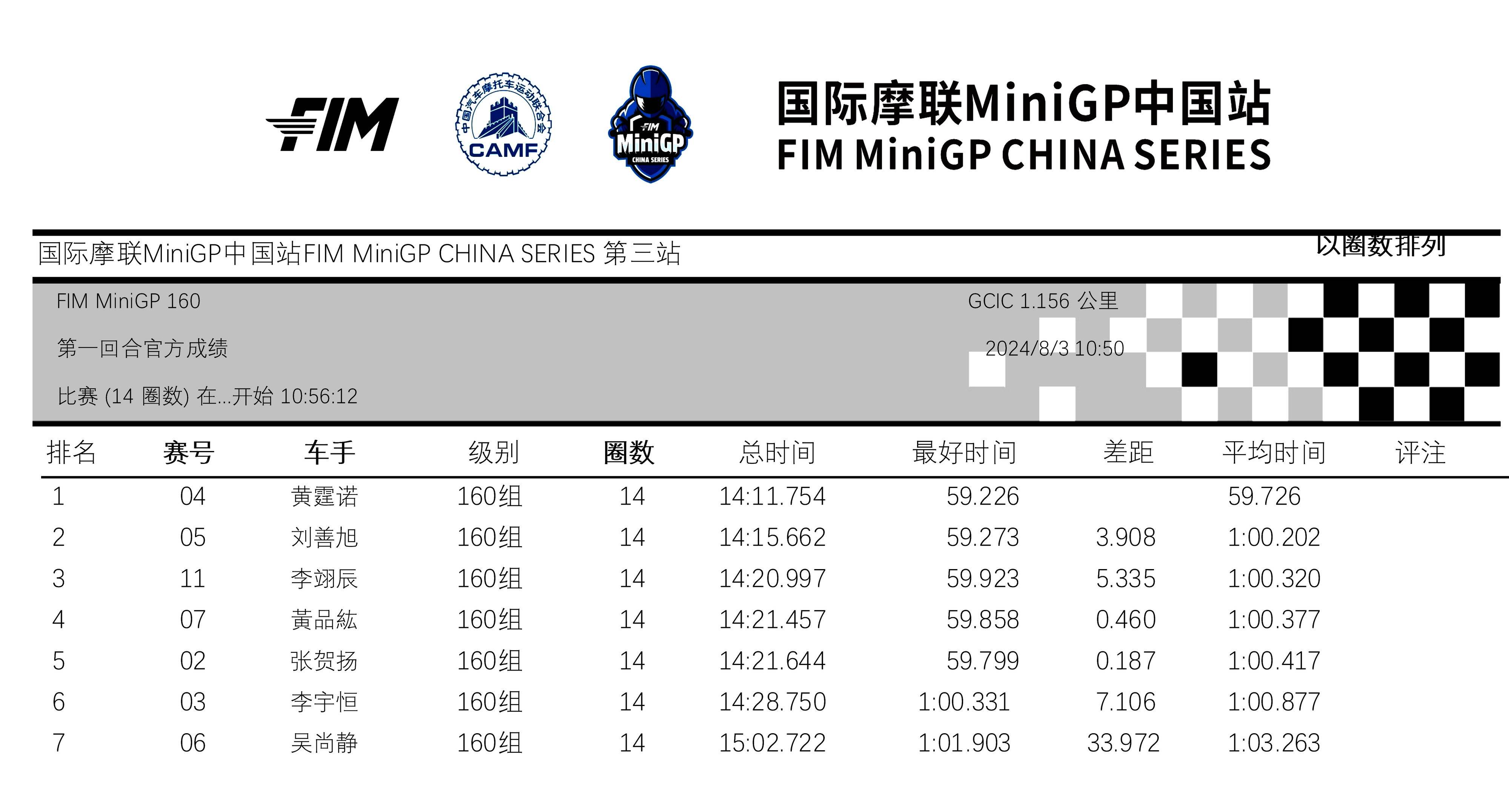 3、Ohvale GP-0 160 組:58.706 秒,伊凡(Qabil Irfan Bin Azlan),馬來西亞;中國車手 58.943 秒,劉善旭;