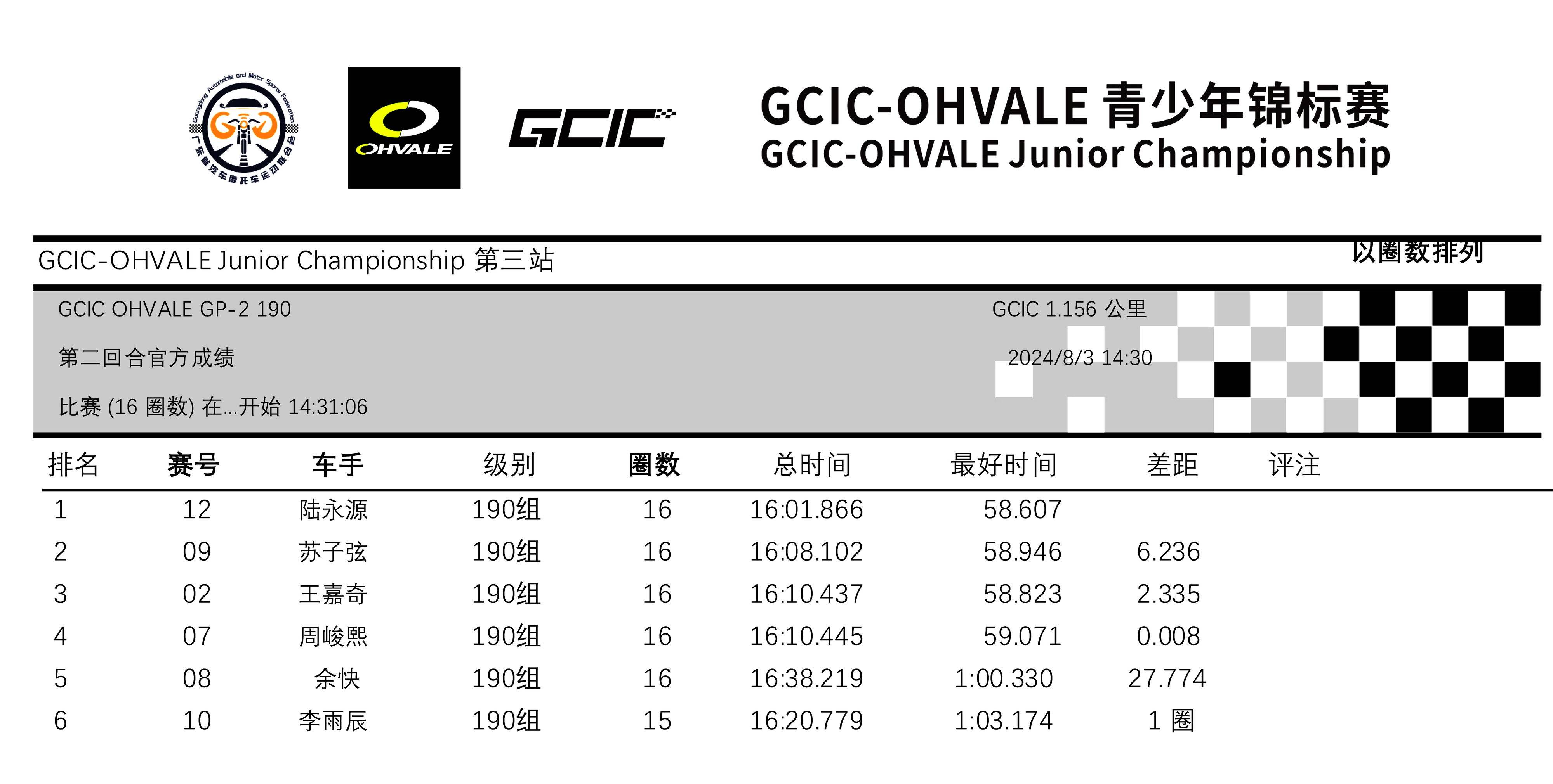 3、GCIC Ohvale 青少年錦標(biāo)賽,采用 Ohvale GP-2 190 賽車的 190 組;