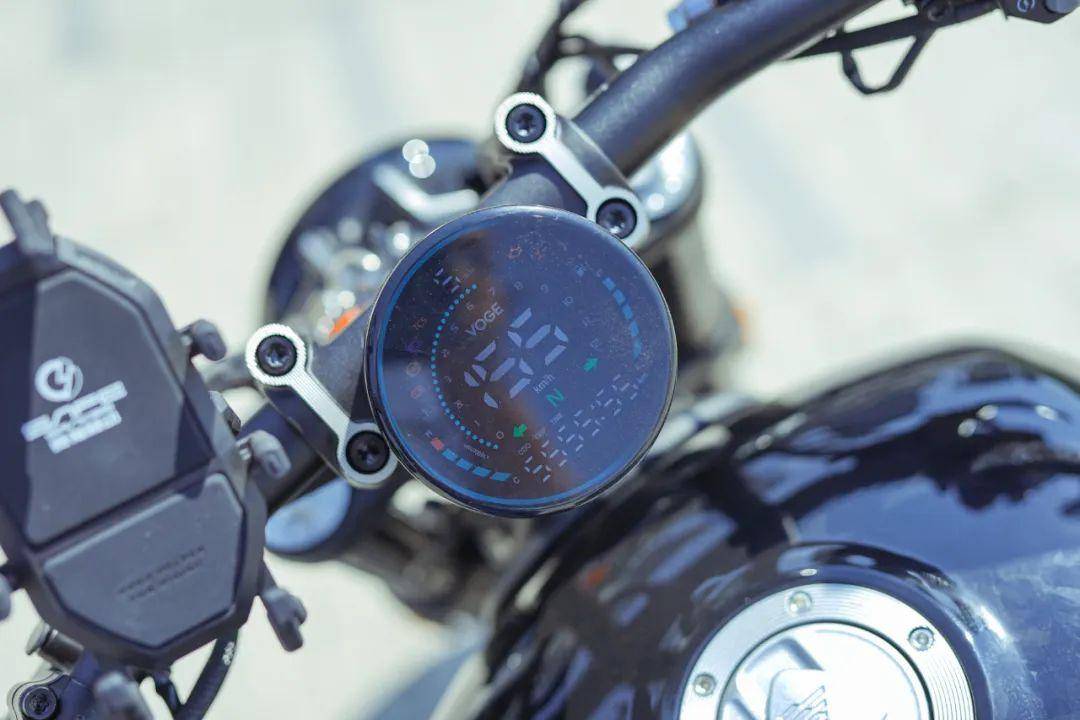 除了敦實,CU250還被定位以運動巡航,所以在外觀設(shè)計上還有一絲運動取向。尾部并沒有像常規(guī)巡航車型那樣“塌”下去,反而以一個相對水平的尾部和一個上揚的后扶手的設(shè)計來收尾。CU250還保留著作為巡航車型的亮點設(shè)計。前面的圓形LED大燈,內(nèi)部有個V字+透鏡設(shè)計、圓形LED儀表、低位鋁合金變徑手把、單邊雙出排氣、伸展姿態(tài)的駕姿……