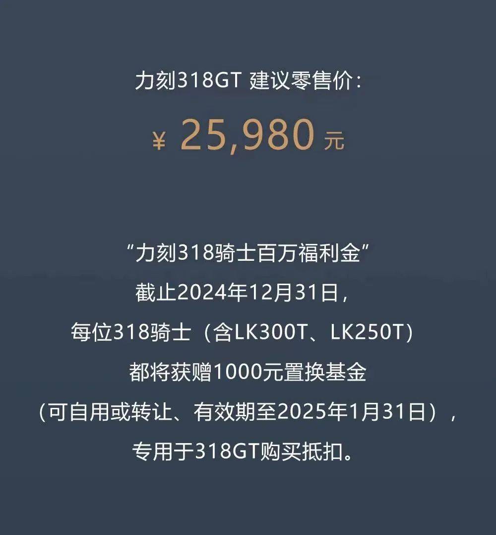 力刻摩托作為金浪科技旗下的知名品牌,以其精湛的工藝和獨(dú)特的設(shè)計(jì),深受國(guó)內(nèi)外眾多用戶的喜愛(ài)和認(rèn)可。其產(chǎn)品不僅在性能上表現(xiàn)出色,更融合了時(shí)尚與科技元素,為消費(fèi)者帶來(lái)極致的駕駛體驗(yàn)。力刻摩托的母公司是金浪科技有限公司,成立于2006年,是一家生產(chǎn)制造摩托車及零配件、摩托車發(fā)動(dòng)機(jī)、汽油機(jī)、通用機(jī)械設(shè)備、電動(dòng)車研發(fā)的企業(yè)。而金浪科技的成功離不開其創(chuàng)始人吳華聰?shù)淖吭筋I(lǐng)導(dǎo)。1998年創(chuàng)建金浪動(dòng)力有限公司,先后榮獲臺(tái)州市優(yōu)秀企業(yè)家、路橋區(qū)拔尖人才等一系列榮譽(yù),現(xiàn)擔(dān)任金浪科技有限公司總經(jīng)理,他獨(dú)立及參與完成,共取得39項(xiàng)發(fā)明專利、實(shí)用新型專利、外觀設(shè)計(jì)專利。如今,力刻318GT的全新發(fā)布,售價(jià):25980元。318老車主還將獲得1000元可自用可轉(zhuǎn)讓的置換金,用于318GT購(gòu)買抵扣,誠(chéng)意十足。這款新品在傳承力刻品牌優(yōu)秀基因的基礎(chǔ)上,進(jìn)行了多項(xiàng)優(yōu)化和升級(jí)。它不僅擁有時(shí)尚動(dòng)感的外觀設(shè)計(jì),更搭載了先進(jìn)的動(dòng)力系統(tǒng),為駕駛者帶來(lái)更強(qiáng)勁、更穩(wěn)定的性能表現(xiàn)。力刻318GT在研發(fā)過(guò)程中,充分汲取了力刻318在市場(chǎng)上的反饋和用戶的寶貴意見建議,對(duì)整車細(xì)節(jié)進(jìn)行了深度優(yōu)化與改良,采用全新動(dòng)力平臺(tái)J350發(fā)動(dòng)機(jī),排量達(dá)到329.53cc。其最大功率由之前LK300T的17.5提升至21.5千瓦,最大扭矩由25提升至31.8扭米,壓縮比達(dá)到10.5:1。LK350T采用曲軸軸瓦設(shè)計(jì),具有更高抗沖擊性,精度更高,在震動(dòng)抑制表現(xiàn)更為出色。配合全新的平衡軸,讓發(fā)動(dòng)機(jī)震動(dòng)得以更好抑制,在強(qiáng)化動(dòng)力體驗(yàn)的同時(shí),大幅增強(qiáng)騎行舒適度。全新研發(fā)的CVT傳動(dòng)系統(tǒng),采用更大的變速比(2.54-0.79),強(qiáng)化加速體驗(yàn)的同時(shí),進(jìn)一步降低油耗表現(xiàn),讓動(dòng)力強(qiáng)勁提升的同時(shí),輸出過(guò)程更加很平順、安靜,為騎手帶來(lái)極致的駕馭體驗(yàn)。力刻318GT版0-100加速僅需9秒,極速更是高達(dá)137Km/h。外觀方面,力刻318GT采用全新前臉設(shè)計(jì),搭配新穎獨(dú)特的全新配色,將科技與時(shí)尚結(jié)合。整體造型硬朗大氣的鐵甲風(fēng)格和車身動(dòng)感的線條,帶來(lái)強(qiáng)烈的視覺(jué)沖擊力,仿佛在宣告著它的與眾不同。力刻318GT彰顯時(shí)尚魅力與個(gè)性的風(fēng)格,更是體現(xiàn)力刻獨(dú)具匠心的設(shè)計(jì)理念。力刻318GT共有三款配色,分別為:星空灰(亞光)、水泥灰、耀夜黑(亞光)。坐高方面,經(jīng)過(guò)力刻精心優(yōu)化,來(lái)到了790毫米,更加友好的坐高加上改良符合人體工學(xué)的騎乘三角,讓力刻318 GT為騎士提供了更加舒適的騎行姿態(tài)。依舊延續(xù)力刻318的高配置定位,標(biāo)配電動(dòng)升降風(fēng)擋,折疊后視鏡、TCS、胎壓監(jiān)測(cè),前輪大直徑雙碟浮動(dòng)盤,每碟搭配對(duì)向四活塞卡鉗,后輪單向雙活塞卡鉗。鋼喉剎車油管,使剎車反應(yīng)迅速,雙通道博世ABS,CST半熱熔輪胎,前120/70-14,后 140/70-14。力刻318GT作為一臺(tái)為性能摩旅新體驗(yàn)而生,16升大油箱,實(shí)測(cè)百公里油耗3.5升左右,續(xù)航達(dá)400公里,并且配有多處實(shí)用的儲(chǔ)物空間。此外,車輛還配備了獨(dú)有的雙段式鳴笛警示系統(tǒng),獨(dú)創(chuàng)的防飛繩飛線(風(fēng)箏線、魚線等)裝置,側(cè)傾熄火、側(cè)踢熄火裝置,最大程度保障騎手安全。本次活動(dòng)除了作為力刻318GT的新品發(fā)布,同時(shí)也是2024第六屆力刻摩托騎行節(jié)的開幕儀式。自2019年力刻品牌創(chuàng)立,第一屆力刻摩托騎行節(jié)摩旅318到2023年第五屆力刻摩托騎行節(jié)摩旅新疆,創(chuàng)始人吳華聰每年都要騎上自己造的車,帶著研發(fā)團(tuán)隊(duì)以及一些經(jīng)銷商和喜歡摩旅的力刻用戶,一起長(zhǎng)途遠(yuǎn)征,上一屆更是有近300名力刻用戶參與其中。而本屆從古都西安到首都北京,在這段摩旅騎行中“力刻318GT”將會(huì)經(jīng)過(guò)黃帝陵、延安、黃土高原、黃河、太行山等壯麗的自然景觀,穿越在千年的歷史長(zhǎng)卷,領(lǐng)略到中國(guó)的歷史文化和自然風(fēng)光。在力刻的品牌使命中不再僅僅局限于制造出色的產(chǎn)品將其銷售給用戶,更要滿足用戶的多樣化需求,更會(huì)為用戶提供一系列全方位、多層次且貼心周到的服務(wù)。這也是力刻品牌創(chuàng)立以來(lái)堅(jiān)持每年舉行力刻摩托騎行節(jié)活動(dòng)的重要意義。