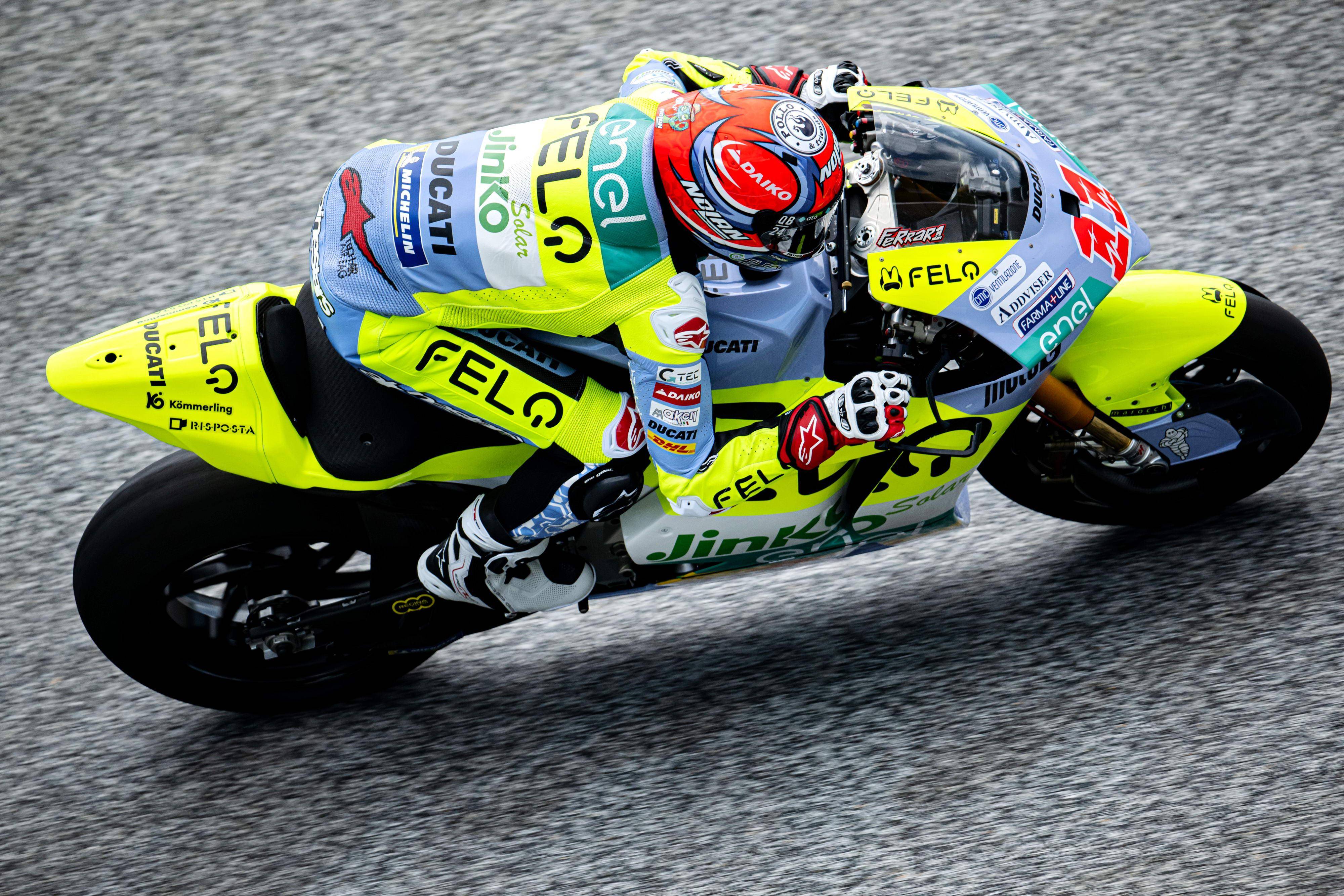 昨天周五(八月 16 日),MotoE 級(jí)別的練習(xí)和排位賽,法拉利和費(fèi)內(nèi)洛在兩節(jié)練習(xí)之后、都未能進(jìn)入前八名,需要跑 Q1;在 Q1,法拉利跑出了第二快的 1 分 38.526 秒、進(jìn)軍 Q2,并最終拿到了 Q2 的第十名,接下來的兩節(jié)正式比賽、將從第四排發(fā)車。