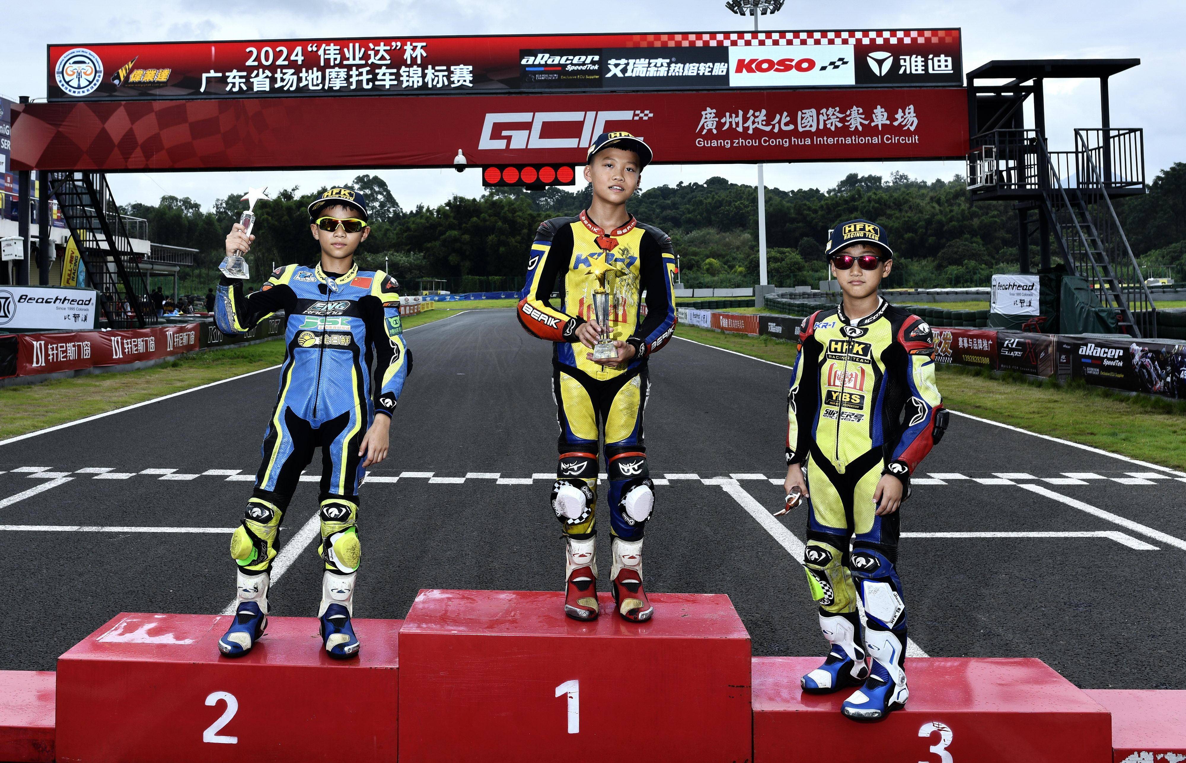 綜合兩節(jié)比賽的成績,黃霆諾以全勝的姿態(tài)奪得了 2024 偉業(yè)達杯 - 廣東省場地摩托車錦標賽 廣州從化站、小童賽道體驗 A 組的冠軍,兩節(jié)比賽都獲得了第二的林景源獲得了亞軍,李宇程拿到了季軍。李宇恒、寇文瑞分別獲得了第四、第五名。