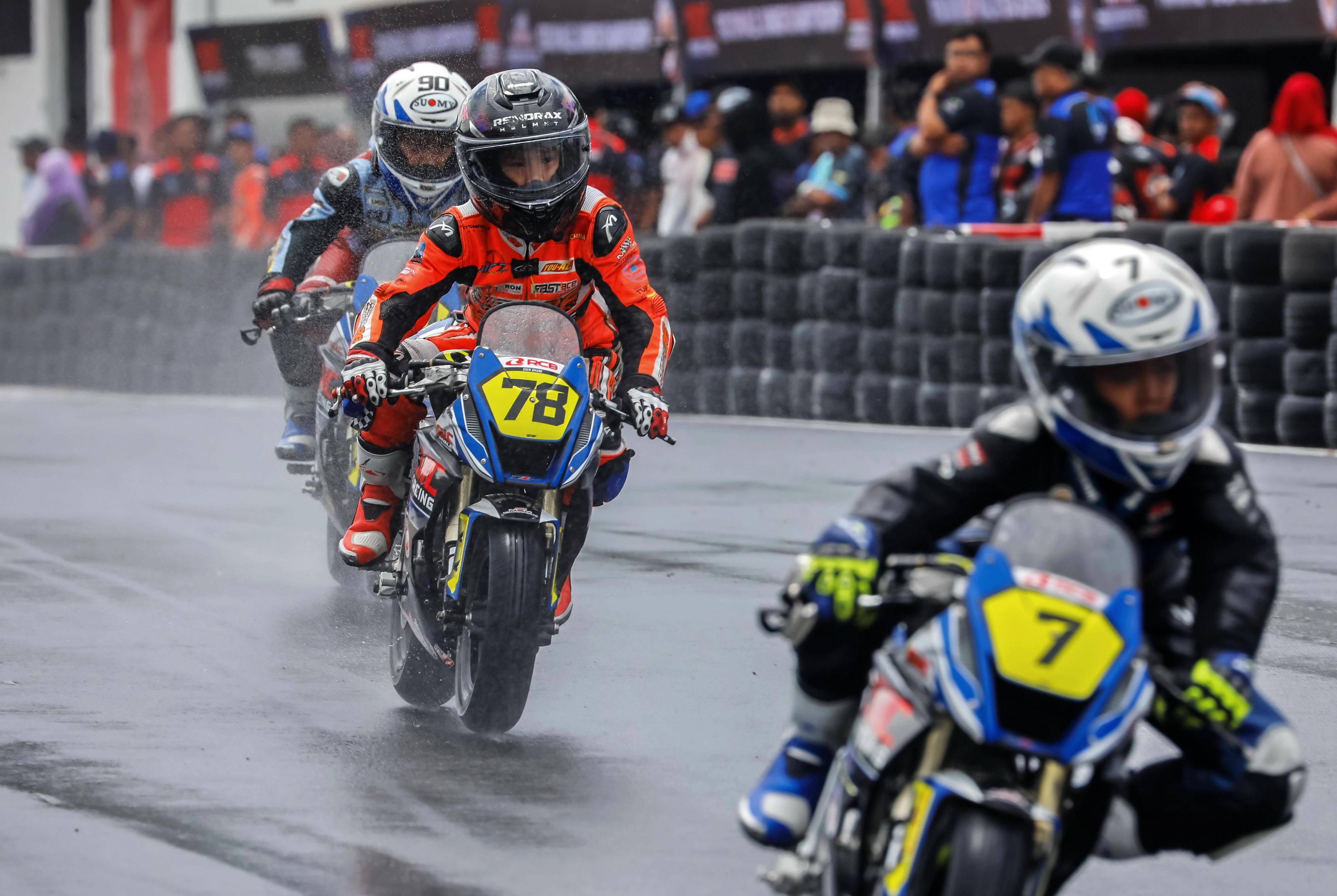 今年繼續(xù)參與到這項(xiàng)比賽中的 SUPER-26 賽車隊(duì),陣容是駕駛 78 號(hào)賽車的陳司航、參加 SIC Ohvale 青少年錦標(biāo)賽 110 cc 組(以下簡(jiǎn)稱 110 組)的比賽;分別駕駛著 43 號(hào)、93 號(hào)賽車的陳詩(shī)瑜、龍俊豪,參與 FIM 迷你 GP 馬來(lái)西亞系列賽的 190 cc 組(以下簡(jiǎn)稱 190 組)的角逐。而對(duì)于三位小車手來(lái)說(shuō),首次來(lái)到 HBC 跑道上參賽,陌生的環(huán)境再加上東南亞進(jìn)入雨季之后、變幻莫測(cè)的天氣,讓他們/她們需要面對(duì)一個(gè)充滿復(fù)雜性的挑戰(zhàn)。