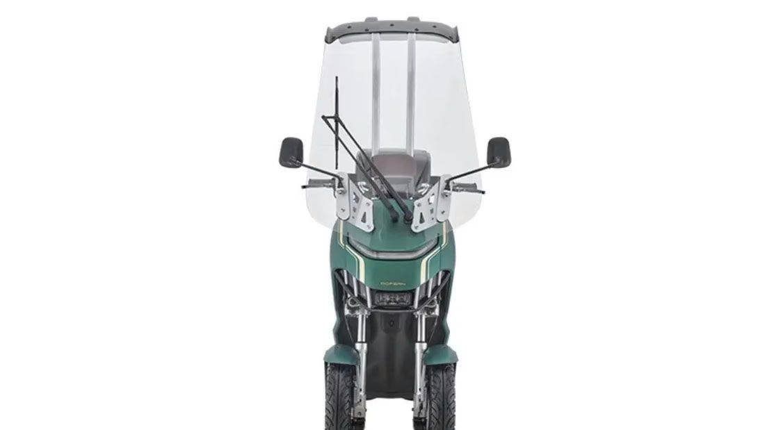 前衛(wèi)三輪造型,配上有遮雨棚的設(shè)定,絕對是路上最搶眼的存在,特別是多雨又炎熱的天氣。