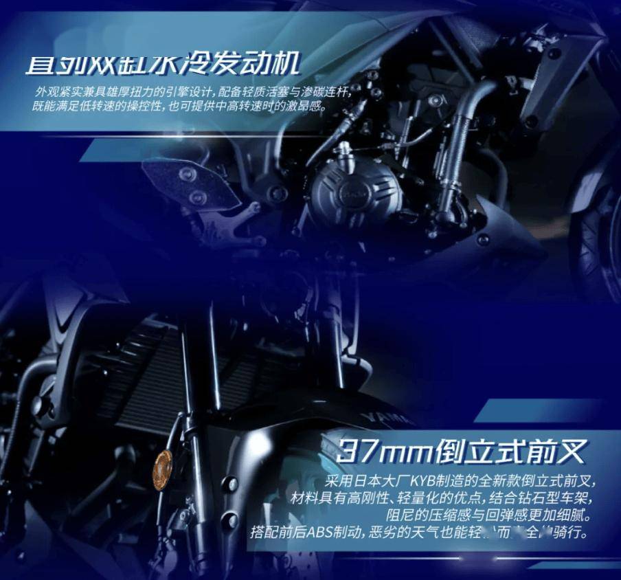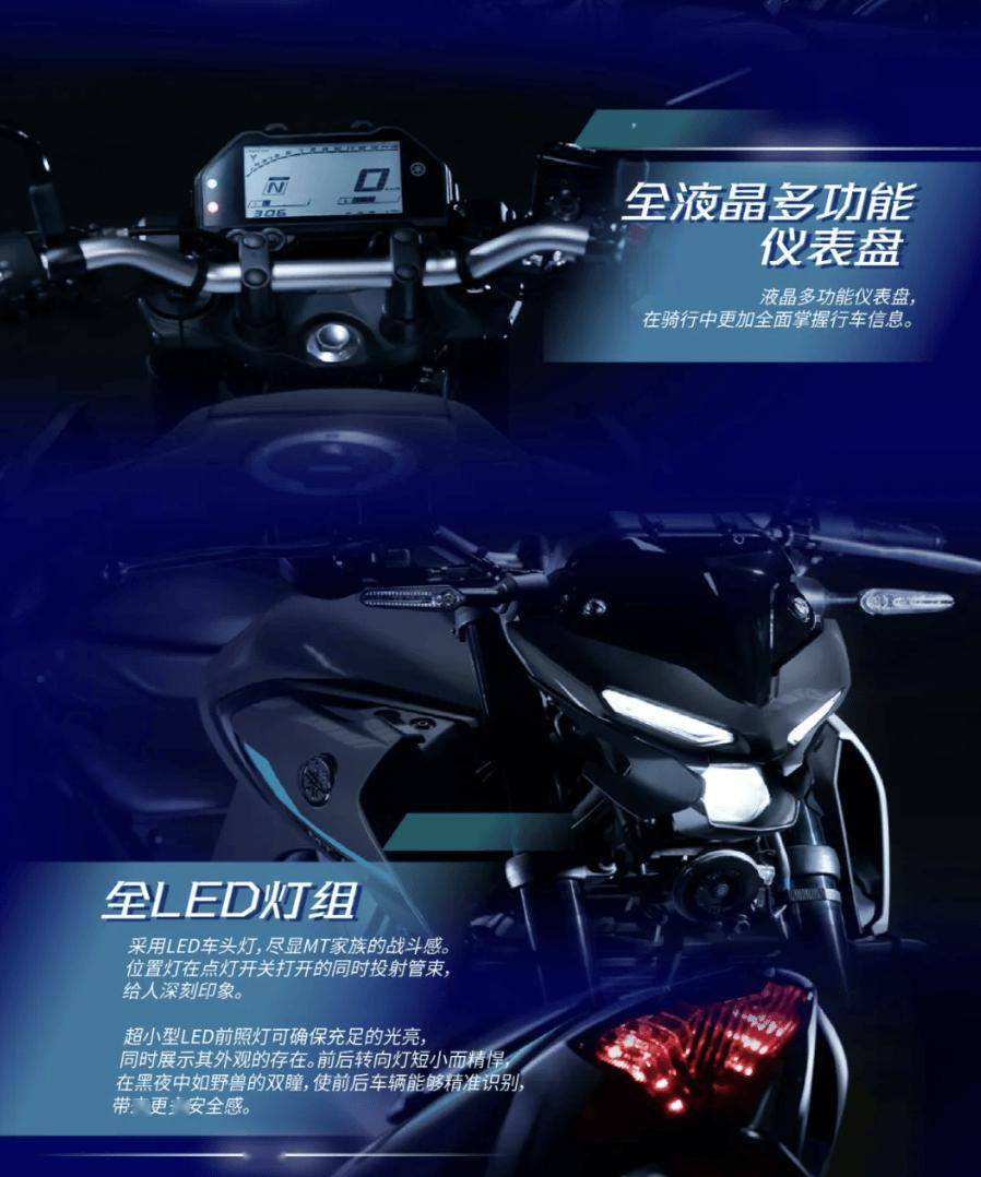 新款 MT-03 提供幻影灰、暗夜黑、炫酷藍(lán)三種外觀配色,是雅馬哈 MT 家族入門街車產(chǎn)品,使用了雅馬哈 MT 家族標(biāo)志性圓形前燈組,同時(shí)換裝了 KYB 37 毫米倒立式前減振。