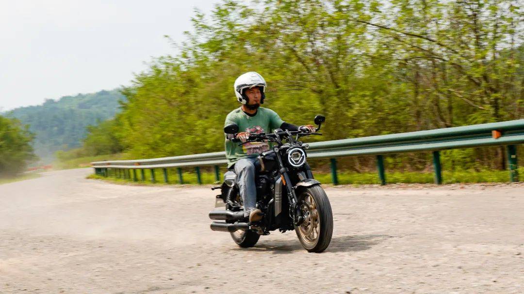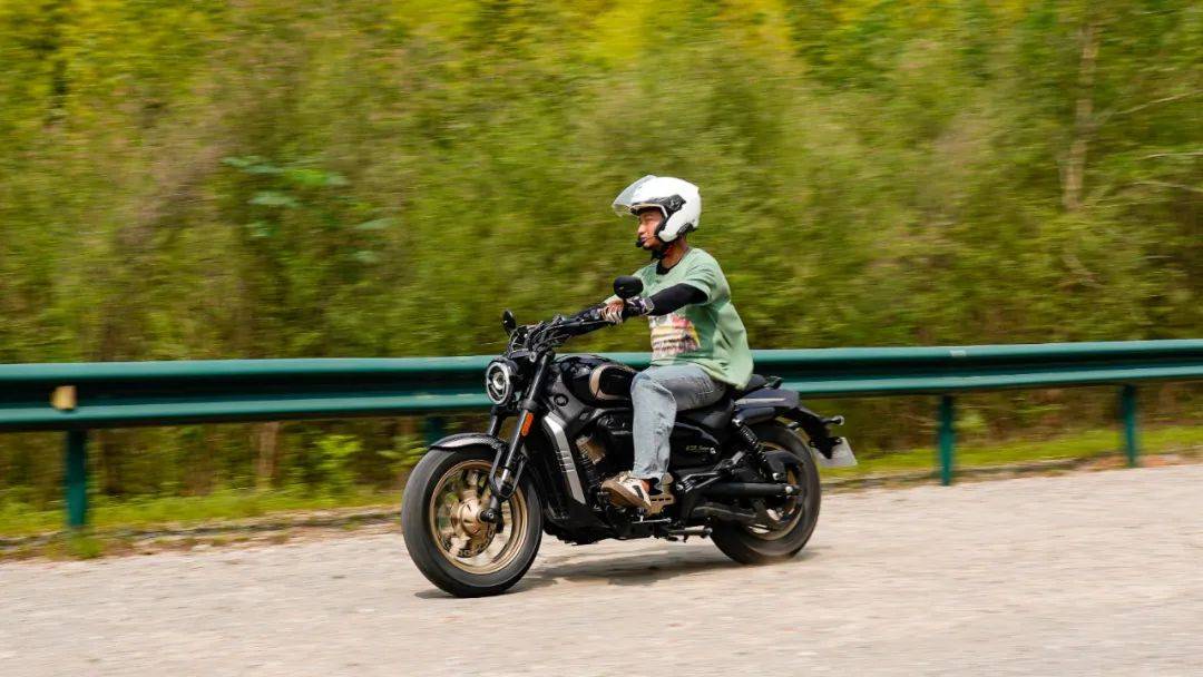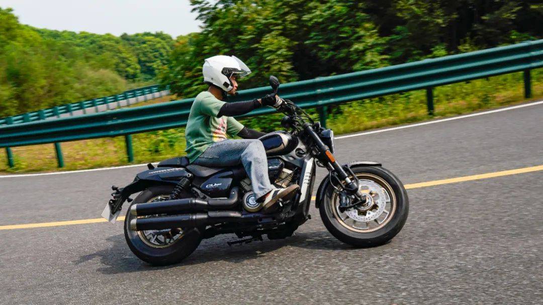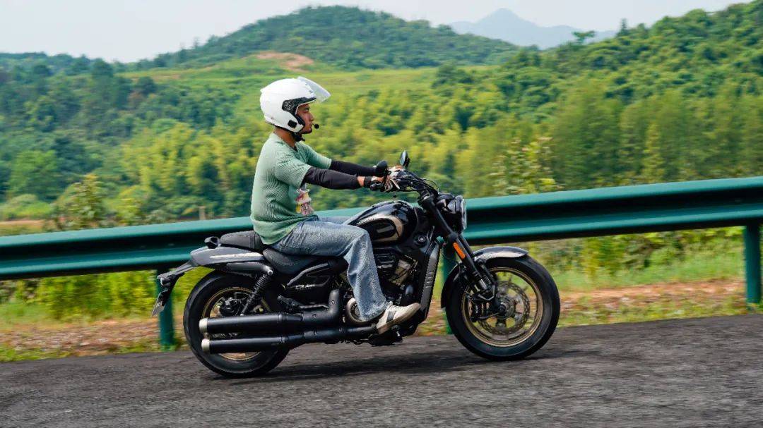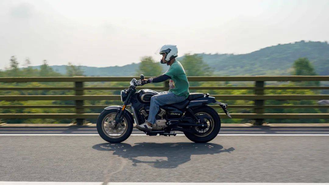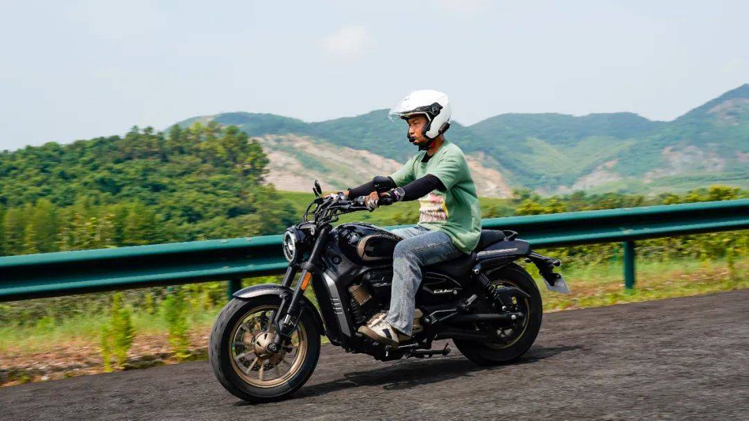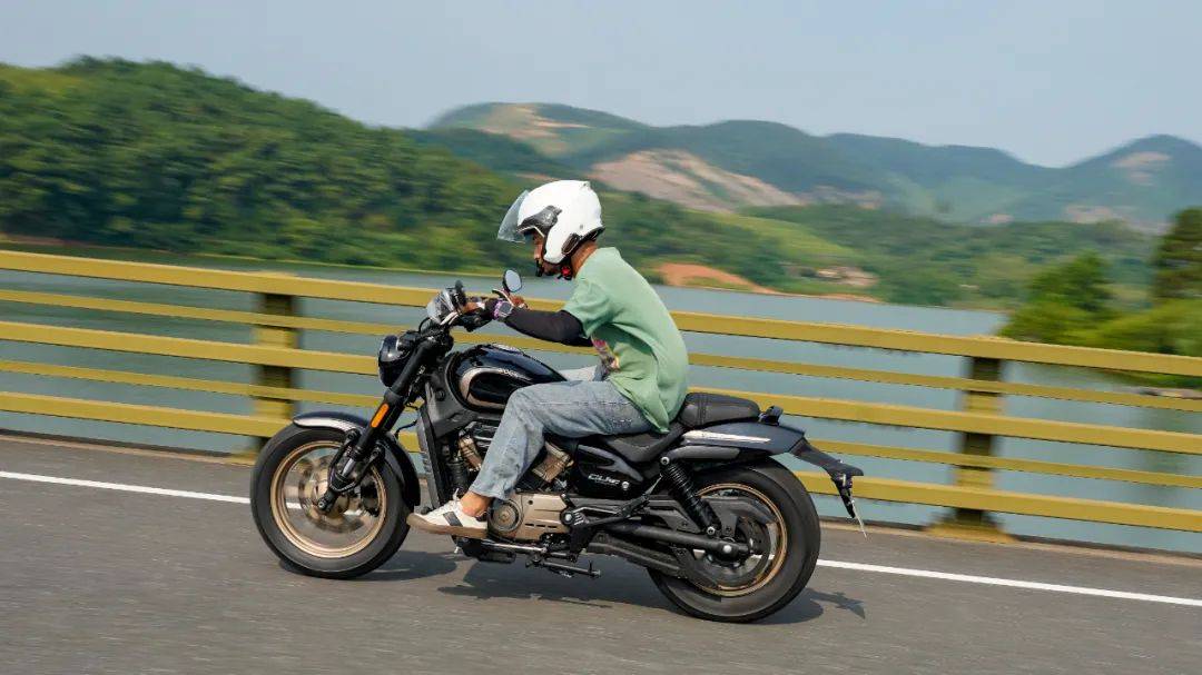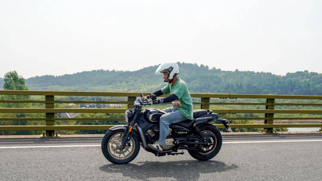 同樣是春風十里的場地,CU250的表現(xiàn)與我們測過的CU525相比其彎道極限會更低一些,這也是照顧到新手朋友的設(shè)定,防止新手朋友對車輛極限沒底,探傾角而導(dǎo)致危險。其余的各項表現(xiàn)上CU250的表現(xiàn)堪稱運動型巡航的典范,只有1460mm的軸距,加上前120/80-16和后150/80-15的輪胎尺寸,使得CU250在騎行時給人的第一感受如街車般的靈活。在入彎前連續(xù)降檔,滑動離合器的質(zhì)感輕盈,檔位清晰好用,在重剎減速時前避震器的下沉量也不大,避震器的支撐性良好,連續(xù)的左右翻身以及回頭彎,車身的響應(yīng)及時,這在一臺入門級別巡航車中是非常難得的表現(xiàn)。同時CU250上配裝的這套赫璐S06輪胎,不管是在緊急制動還是重剎,以及彎道中的表現(xiàn)都很OK,沒有絲毫抓地不足的感覺,在輪胎還有一指距離滿胎時,腳踏的探地釘已經(jīng)觸地,所以只有較為激烈的壓彎時,才會觸到腳踏極限,應(yīng)對日常的跑山完全足夠。通過連續(xù)的山路駕駛,可以看到CU250的性格也很明顯,就是一臺易于駕馭,好騎的入門級巡航車,同時超低的震動,如街車般靈活的操控性能,可以稱得上一臺好騎的巡航車,表現(xiàn)相當出色。