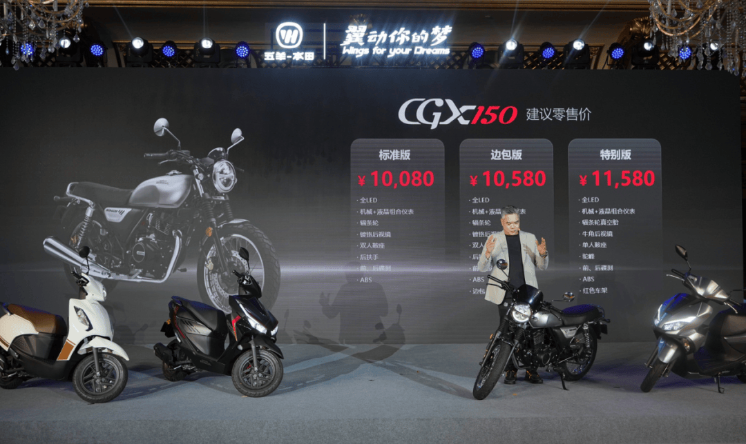 發(fā)布會上,五羊-本田公布了三款新發(fā)布車型的建議零售價:CGX150標準版建議零售價10080元起、邊包版建議零售價10580元起、特別版建議零售價11580元起、NWX125建議零售價9490元起、Spacy125建議零售價8680元起。NPF125的售價將會在后續(xù)擇期公布,敬請期待。