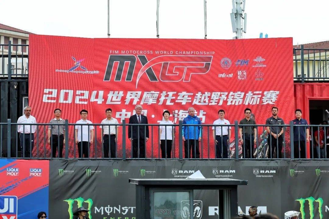 上海市副市長解冬宣布賽事開賽,國際奧委會委員、中國奧委會副主席于再清出席開賽儀式,國際摩托車運(yùn)動聯(lián)合會主席喬治·維埃加斯致辭,中國汽車摩托車運(yùn)動聯(lián)合會主席詹郭軍,上海市政府副秘書長王平、上海市體育局局長徐彬出席開幕式,奉賢區(qū)委副書記、區(qū)長王益群致辭。上海農(nóng)商銀行黨委書記、董事長徐力,盈方摩托競賽CEO大衛(wèi)·隆戈,國際摩聯(lián)越野委員會主席安東尼奧·阿利亞,和匯集團(tuán)董事長倪華杰等參加開幕式