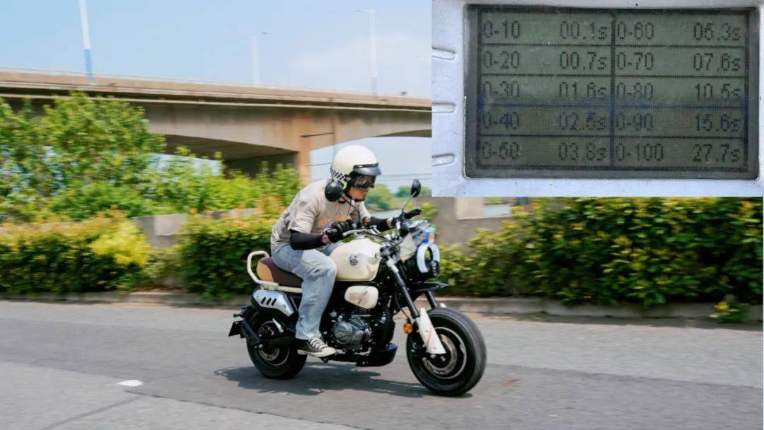 墩墩在怠速時(shí)整車的震感細(xì)微,基本感知不到震動(dòng),隨著轉(zhuǎn)速的攀升,在6000rpm時(shí)腳踏會(huì)有一點(diǎn)震感,其他部位震感基本沒有,繼續(xù)拉高轉(zhuǎn)速,在10000rpm極限狀態(tài)下,手把坐墊后視鏡也都沒有較大的震感,處于正常偏小的范圍,就震動(dòng)抑制表現(xiàn),在我們測(cè)試過(guò)的mini車型中名列前茅,表現(xiàn)出色。