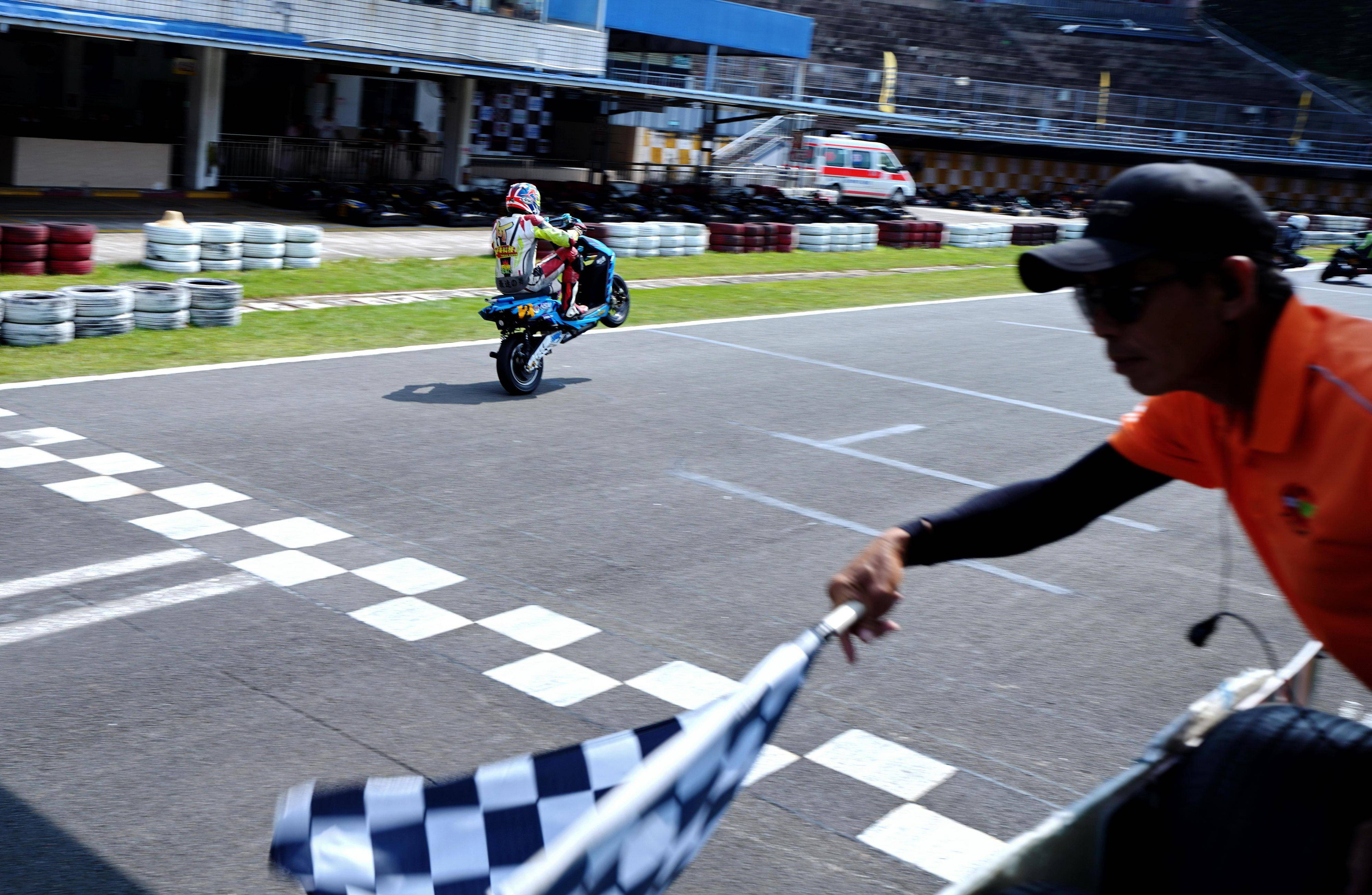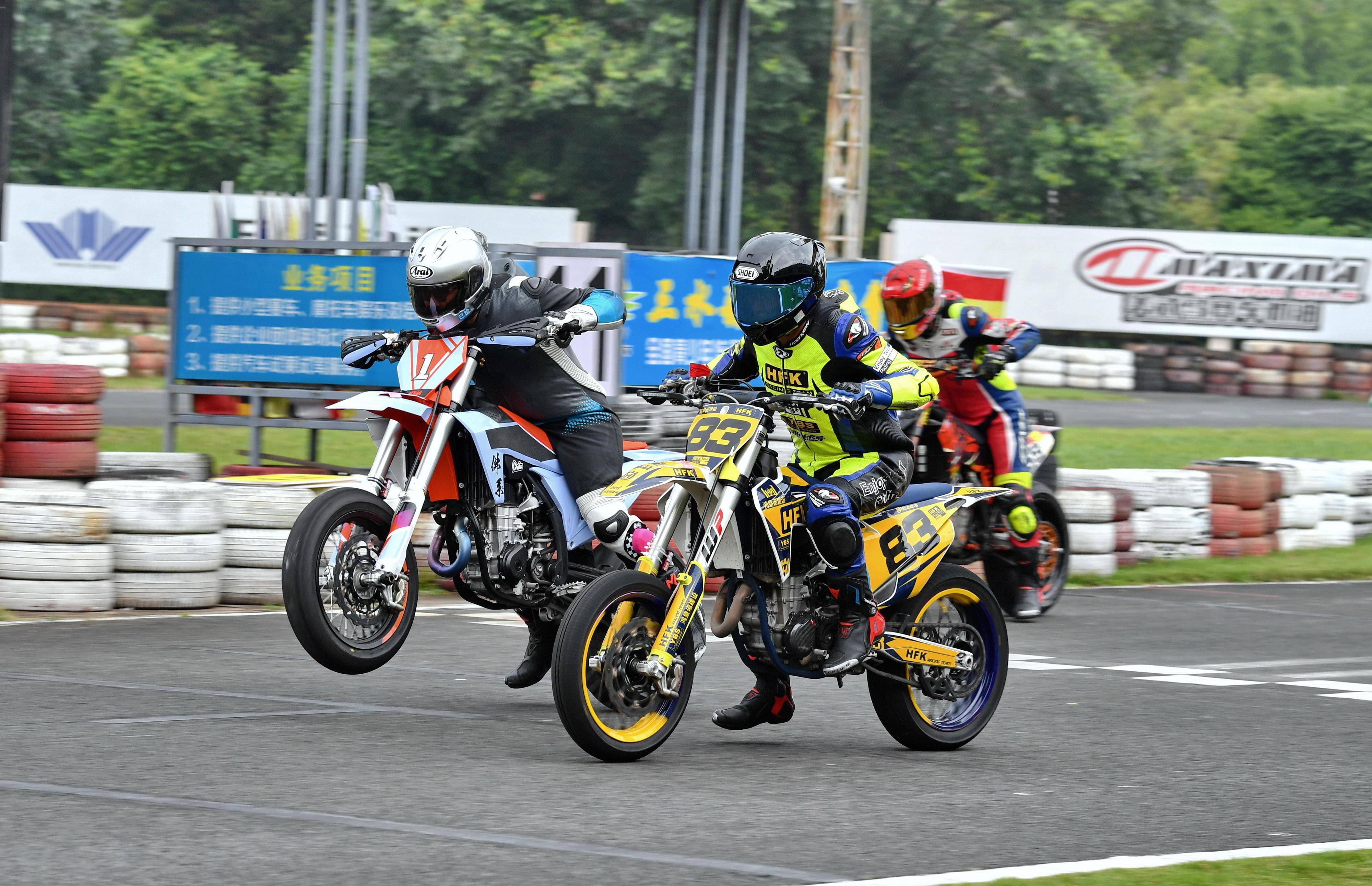 Supermoto 滑胎公開組的兩節(jié)比賽、都有著峰回路轉(zhuǎn)的戰(zhàn)況,駕駛 83 號(hào)車的李亞文奪得了第一節(jié)比賽的冠軍,爭(zhēng)奪冠軍過程中曾摔了一跤、1 號(hào)車的黃家輝獲得了亞軍,59 號(hào)車的何志敏拿到了季軍。