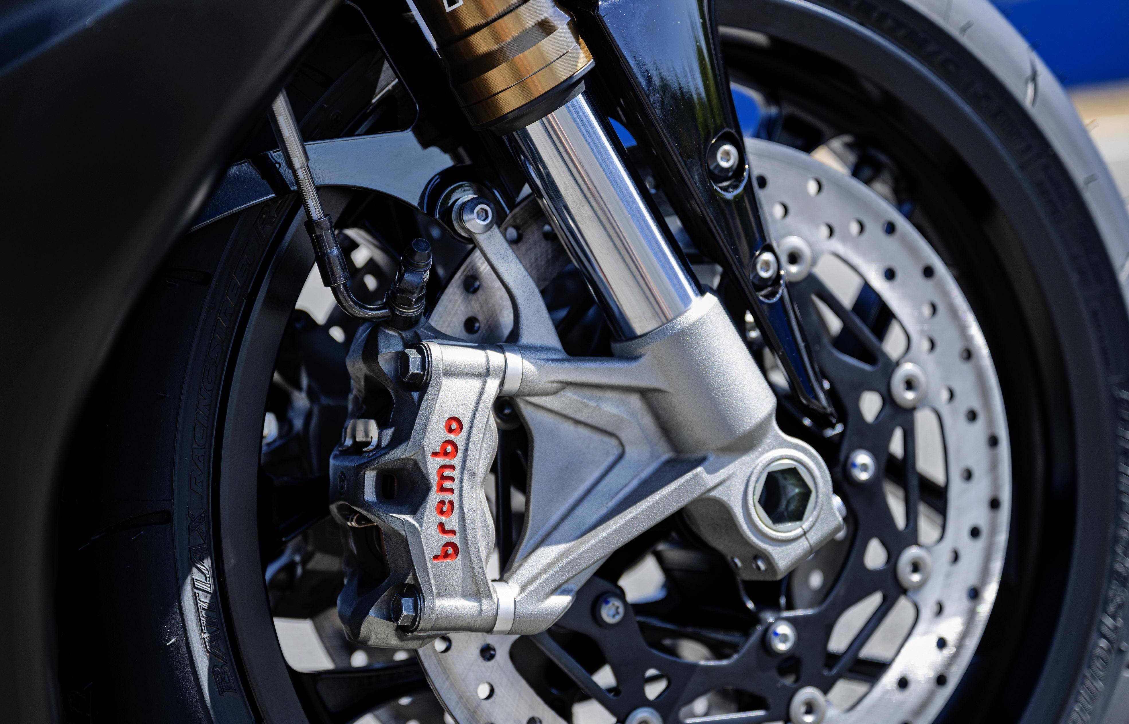 2、標(biāo)配了 Brembo 布雷博的 Stylema 前剎車卡鉗。該卡鉗反應(yīng)靈敏、性能卓越,并能為騎士提供更加精細(xì)的手感。在面對改裝限制要求較為嚴(yán)格的 Superstock/STK1000 級別賽事規(guī)則時,標(biāo)配了 Stylema 前剎車卡鉗可以省卻再改裝的額外費用。而公路型賽車運動較為流行的歐洲地區(qū),從不同國家的本土錦標(biāo)賽、到 FIM EWC 世界耐力錦標(biāo)賽,Superstock/STK1000 級別是大部分非職業(yè)車手的最佳選擇;