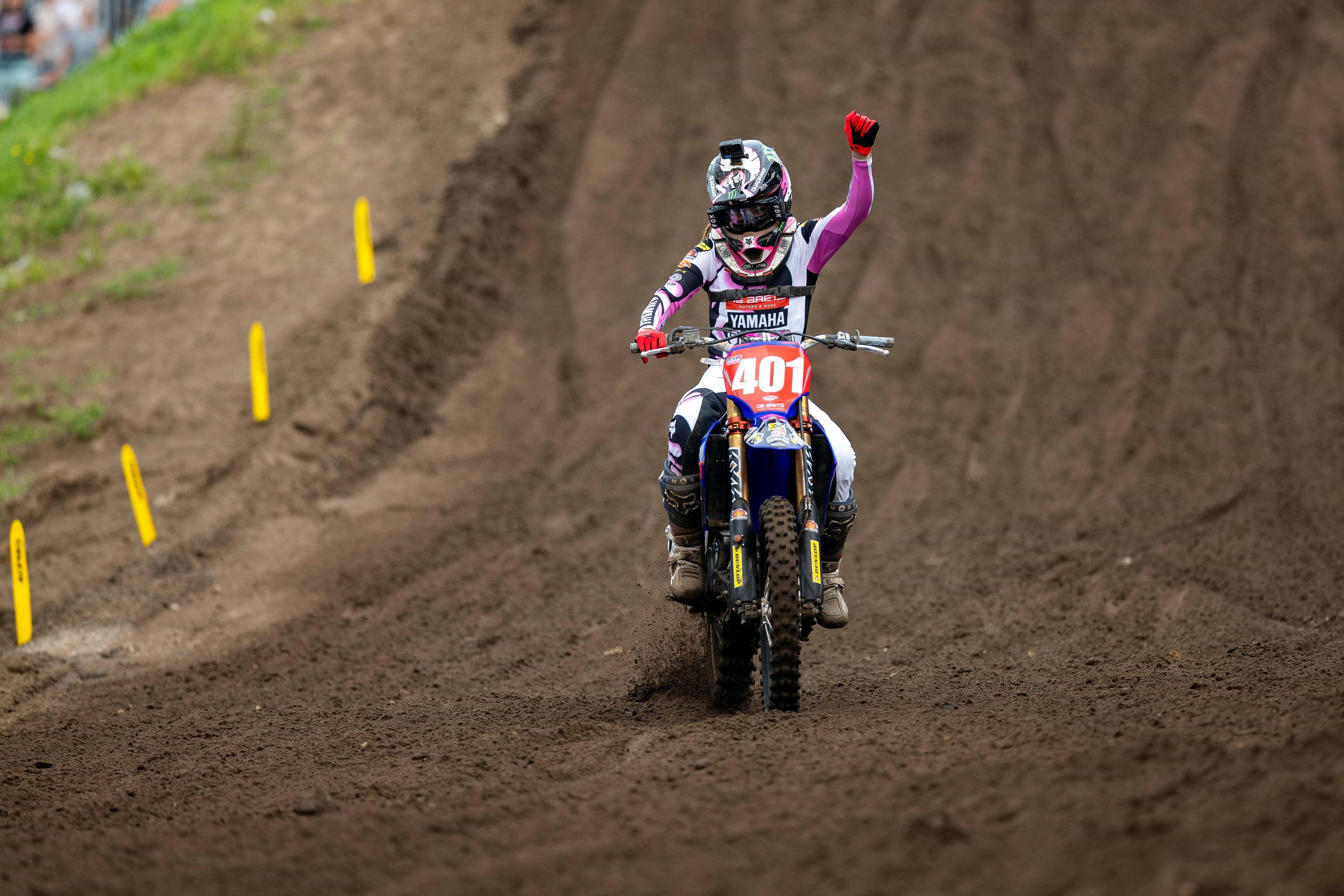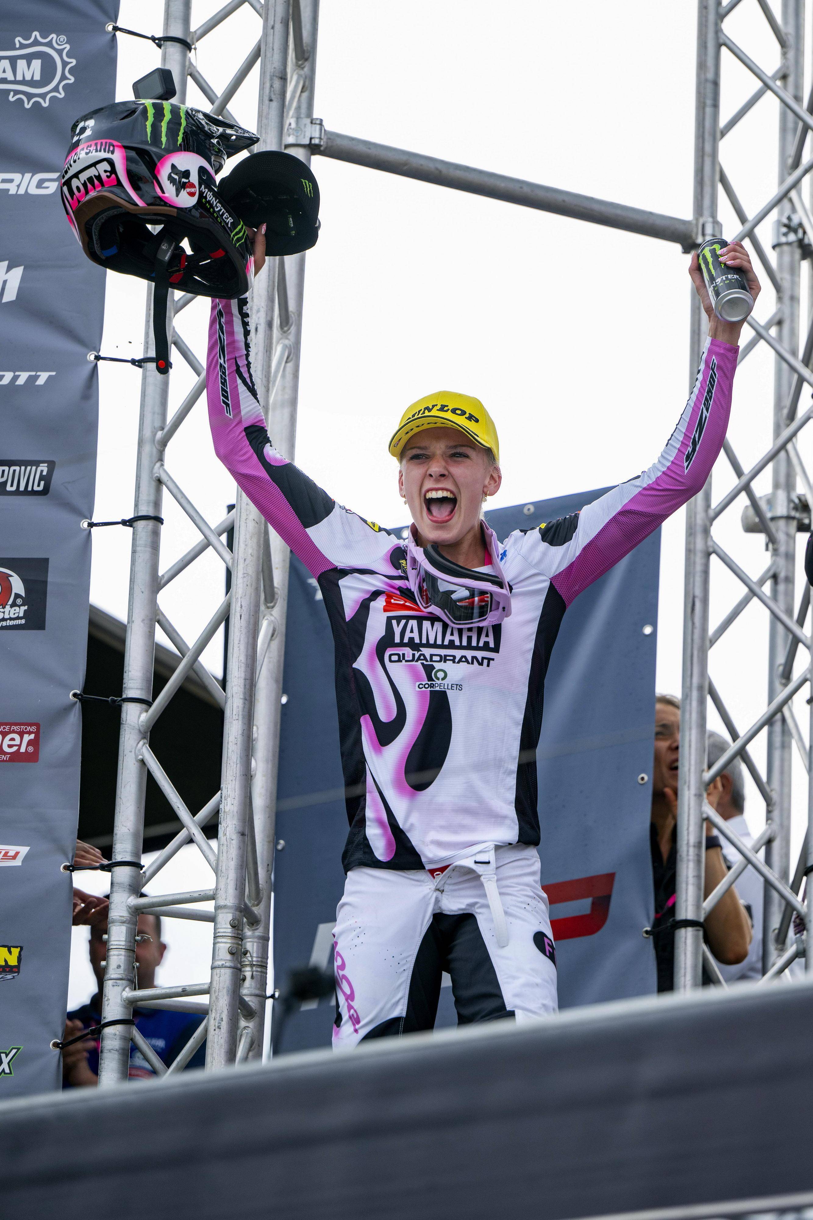 駕駛著 401 號賽車,剛滿十七歲不久的杜魯寧,2024 賽季只是她進(jìn)入 WMX 的第二個賽季。在今年的七個分站、共計十三節(jié)正式比賽(第五站意大利、第一節(jié)比賽被取消)里,她總共奪得了五節(jié)比賽的冠軍、整個賽季累計十次登上了頒獎臺。在 2024 賽季的勝利,是她在 WMX 職業(yè)生涯的首個世界冠軍頭銜,杜魯寧同時也成為了 WMX 這個自 2003 年首次舉辦的女子大賽、有史以來最年輕的世界冠軍。