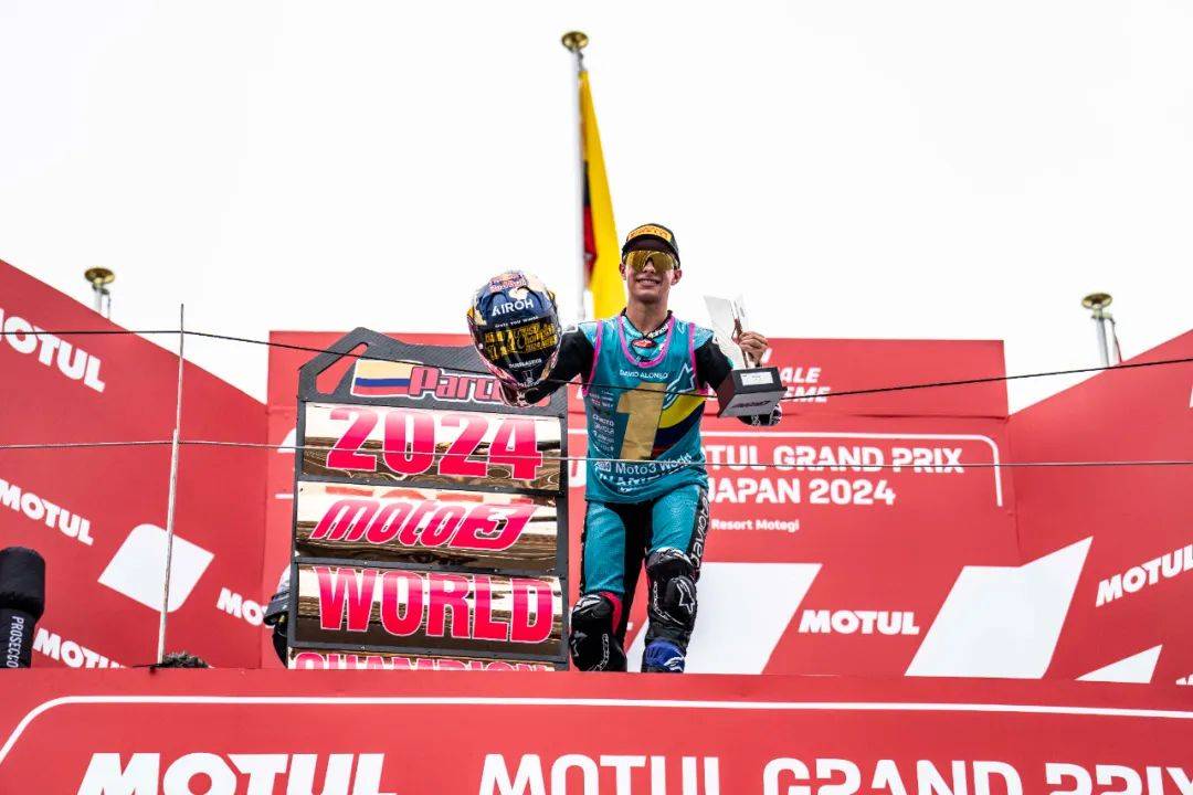 核心提示:10月6日,MotoGP日本大獎(jiǎng)賽在茂木賽道舉行。在Moto3組的比賽中,CFMOTO廠隊(duì)車手大衛(wèi)阿隆索第一個(gè)沖過終點(diǎn)線拿到分站冠軍,在賽季