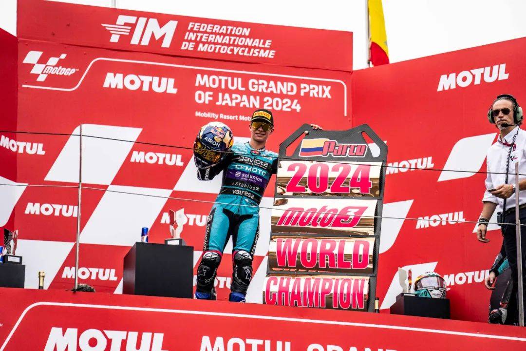 10月6日,MotoGP日本大獎(jiǎng)賽在茂木賽道舉行。在Moto3組的比賽中,CFMOTO廠隊(duì)車手大衛(wèi)·阿隆索第一個(gè)沖過終點(diǎn)線拿到分站冠軍,在賽季還有四站比賽的情況下,他憑借車手積分榜109分的領(lǐng)先優(yōu)勢,已經(jīng)提前宣布鎖定2024賽季Moto3年度車手總冠軍。這同時(shí)也是中國制造商第一次在世界級摩托車比賽中,拿到年度車手總冠軍。2024賽季是中國制造商CFMOTO以廠隊(duì)形式參賽Moto3的第三個(gè)賽季,也是CFMOTO參加Moto2的第一個(gè)賽季。在幾名車手一次次驚人表現(xiàn)的同時(shí),CFMOTO也在短短7個(gè)月內(nèi),一次次在世界舞臺上,創(chuàng)造中國車廠的歷史。卡塔爾大獎(jiǎng)賽,中國制造商首個(gè)Moto3分站冠軍葡萄牙大獎(jiǎng)賽,中國制造商首個(gè)Moto3全場最快圈美國大獎(jiǎng)賽,中國制造商首個(gè)Moto3桿位發(fā)車奪冠法國大獎(jiǎng)賽,中國制造商首個(gè)Moto3三連桿位意大利大獎(jiǎng)賽,中國制造商首個(gè)Moto3三連分站冠軍英國大獎(jiǎng)賽,中國品牌首個(gè)Moto2分站冠軍阿拉貢大獎(jiǎng)賽,中國品牌首次在Moto2分站包攬冠軍、桿位、最快圈日本大獎(jiǎng)賽,中國制造商首個(gè)Moto3年度車手總冠軍……2024賽季,Moto3車手積分榜已提前決出冠軍,在Moto3車隊(duì)以及制造商積分榜上,CFMOTO仍舊手握大幅的領(lǐng)先優(yōu)勢。本賽季還有四站比賽,CFMOTO Aspar車隊(duì)還將為了車隊(duì)以及中國制造商的榮耀,繼續(xù)沖擊最高領(lǐng)獎(jiǎng)臺。