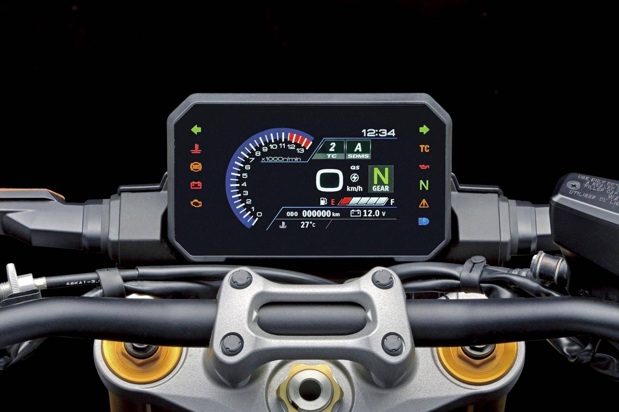 車體采用一副鋁合金雙翼樑制的車架、由超級跑車 GSX-R1000 所使用的結(jié)構(gòu)衍生而來的后搖臂,重疊六角形的 LED 前大燈、可調(diào)的懸掛系統(tǒng)、數(shù)字式儀表板,并標(biāo)配了名為 SIRS(Suzuki Intelligent Ride System,Suzuki 智能騎行系統(tǒng))的電控系統(tǒng)。與現(xiàn)行的 2024 款相比,新的 2025 GSX-S1000 主要變化是新的車身圖案/貼花、以及部分組件的新配色,儀表板增加了日間、夜間模式的不同背景色切換等。