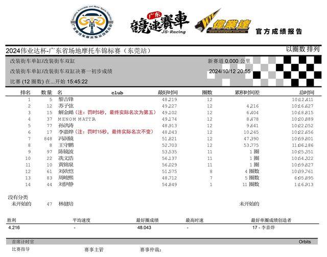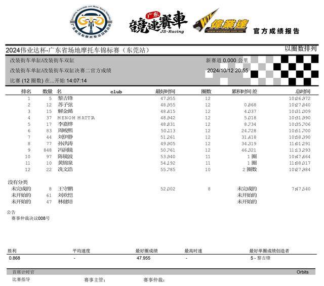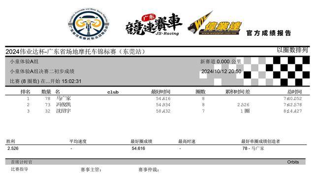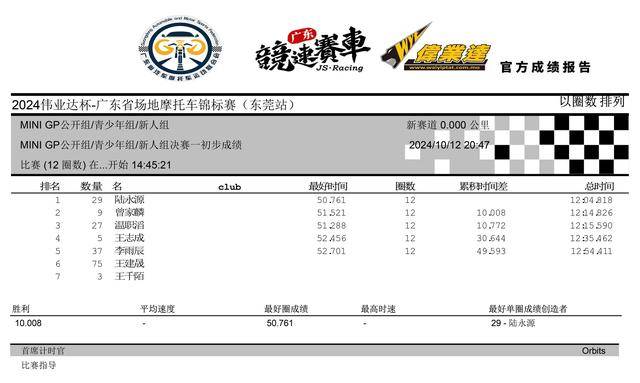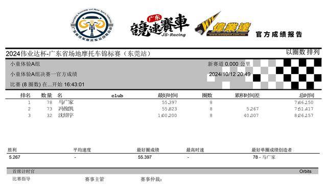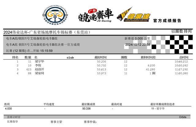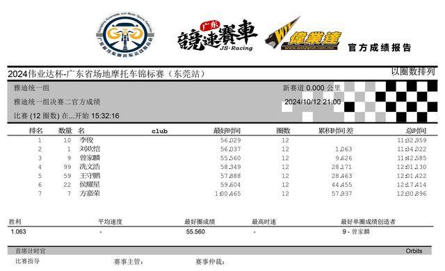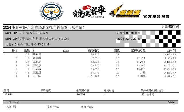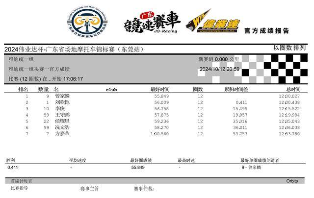 2024 偉業(yè)達(dá) 廣東省場(chǎng)地摩托車錦標(biāo)賽 東莞站:賽事成績(jī)