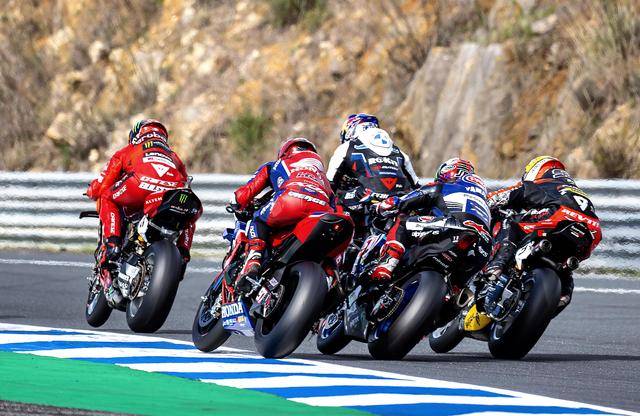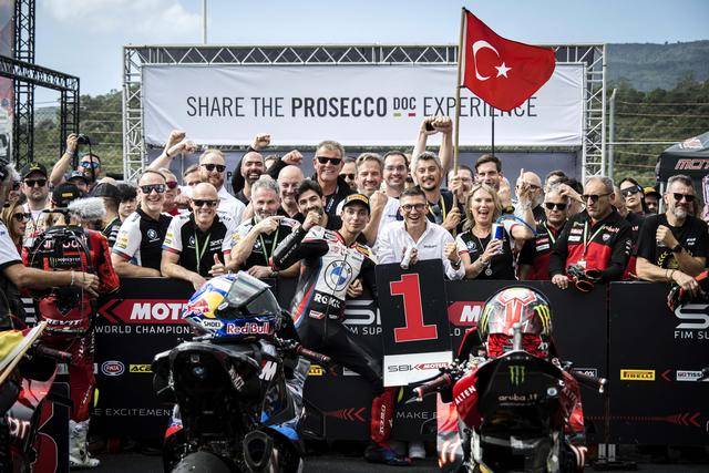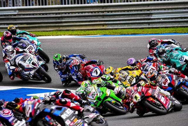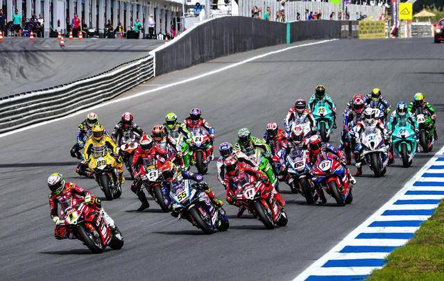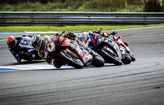 WSBK 級別、賽前的 Super Pole 超級排位賽在濕地之下進(jìn)行,駕駛 54 號車的土耳其車手拉格里奧盧(Toprak Razgatlioglu)拿到了第一節(jié)比賽的排頭位出賽;9 號車的意大利車手佩魯奇(Danilo Petrucci)、65 號車的英國車手雷亞(Jonathan Rea),分別排在第二、第三位發(fā)車。