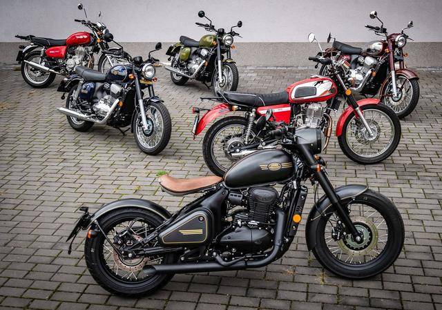 下圖:搭載風冷單氣缸、排氣量 334 cc 發(fā)動機的 2024 JAWA 350 系列。車型包括了單座位的 350 CL Bobber、350 CL Perak,以及復古街車款的 OHC 350、OHC 350 Sport。