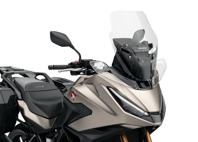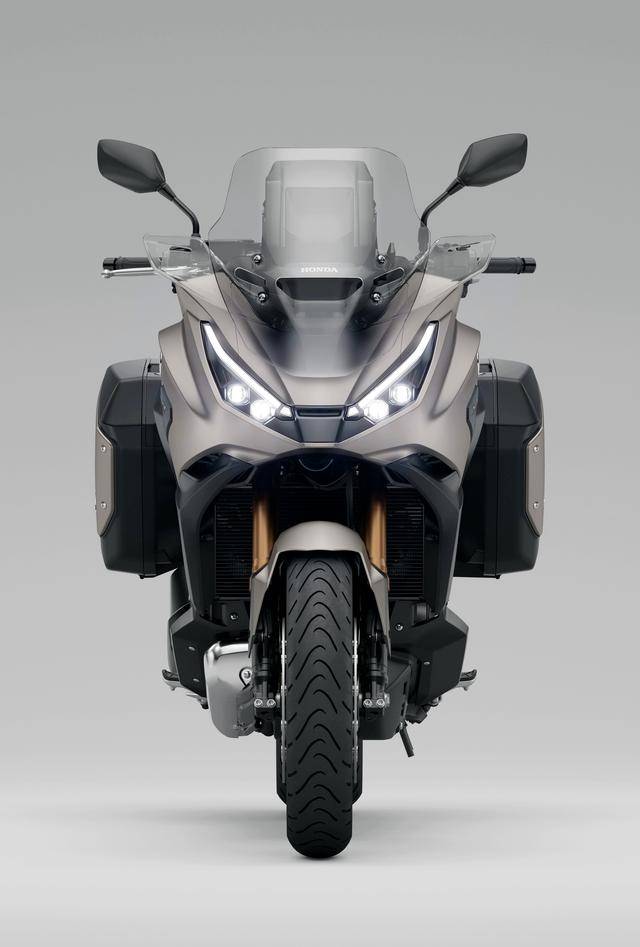 3、車體方面的修改是 2025 NT1100 的重點(diǎn),首先是車身的外觀經(jīng)過重新設(shè)計(jì),整流罩采用了一個(gè)更鋒利、更激進(jìn)的風(fēng)格;新設(shè)計(jì)的投影式前大燈,集成了日間行車燈和彎燈;新的前風(fēng)擋具有五路式調(diào)整功能,且可單手進(jìn)行操作;更長(zhǎng)的前、后輪擋泥板;
