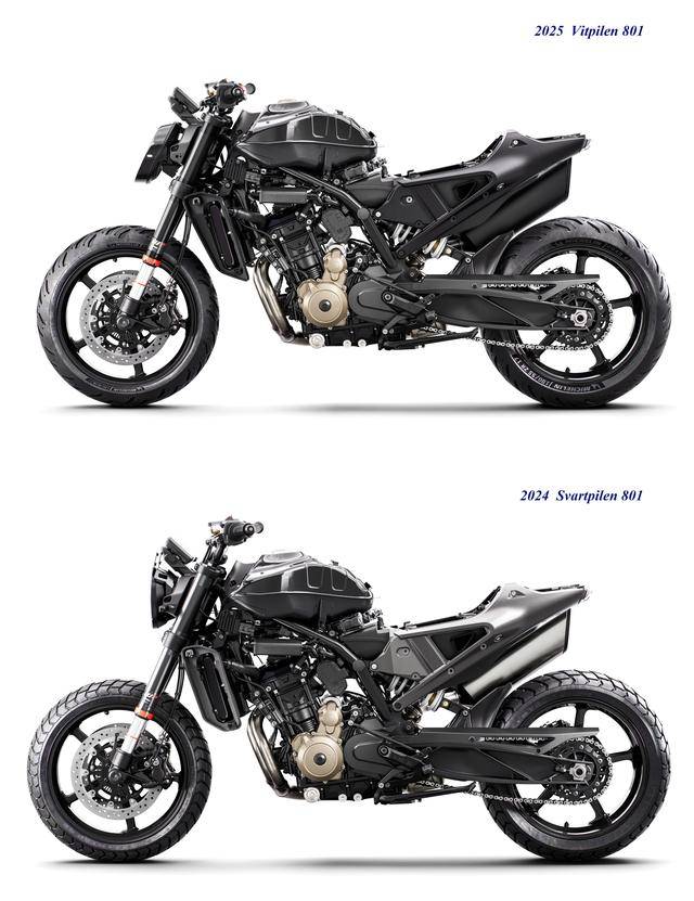新的 2025 Vitpilen 801 白箭沿用了此前所發(fā)布的、Svartpilen 801 黑箭的水冷四沖程直列兩氣缸、DOHC每氣缸四氣閥的發(fā)動機,標(biāo)配了 PASC 動力輔助滑動式離合器、六檔的變速齒輪箱,該機器實際上來自 KTM的 LC8c 動力平臺,最大動力輸出為 77 kw(約 105 匹)、與同平臺的 KTM 790 Duke 相同。此外,面向歐洲市場的 2025 Vitpilen 801 白箭另有一個低馬力(95 匹)的 L 版。車體方面,采用一副鋼管式的車架,獨特的外觀風(fēng)格,LED 的大燈、數(shù)字式的儀表板,多項的電子輔助控制系統(tǒng)等。