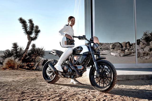 新的 Scrambler 十周年 Rizoma 紀(jì)念版,是廠方的風(fēng)格中心(Centre Stile Ducati)與 Rizoma 合作開發(fā)而成,限量發(fā)售 500 輛。獨(dú)特的車體配色,是基于石白色(Stone White)、黑色和金屬玫瑰色(metal Rose)這三個(gè)色彩之間所達(dá)至的平衡 —— 制作方希望通過這個(gè)精致的色彩組合,去尋求達(dá)到一個(gè)如同雕塑般的效果,從而讓這款限量紀(jì)念版的 Scrambler 在進(jìn)入藝術(shù)和設(shè)計(jì)世界的旅程中、能夠創(chuàng)造出一個(gè)新的里程碑。