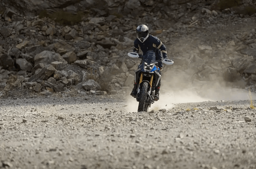 寶馬F 450 GS概念車的外觀設(shè)計(jì)明顯承襲了寶馬GS家族的硬派風(fēng)格,特別是其前臉設(shè)計(jì)與R 1300 GS高度相似,標(biāo)志性的X型前大燈極具辨識(shí)度,讓人一眼就能認(rèn)出這是寶馬GS系列的一員。車身側(cè)面同樣保留了GS系列的粗獷線條,搭配前19寸后17寸的越野風(fēng)格輪胎,使得整車充滿了越野氣息。同時(shí),車身的輕量化設(shè)計(jì)和長(zhǎng)行程的減震系統(tǒng),不僅提升了車輛的操控性能,更為駕駛者帶來(lái)了更為舒適的騎行體驗(yàn)。F 450 GS配備了全可調(diào)倒立式前叉和帶氣瓶的后 減震器,整車重量為175kg。