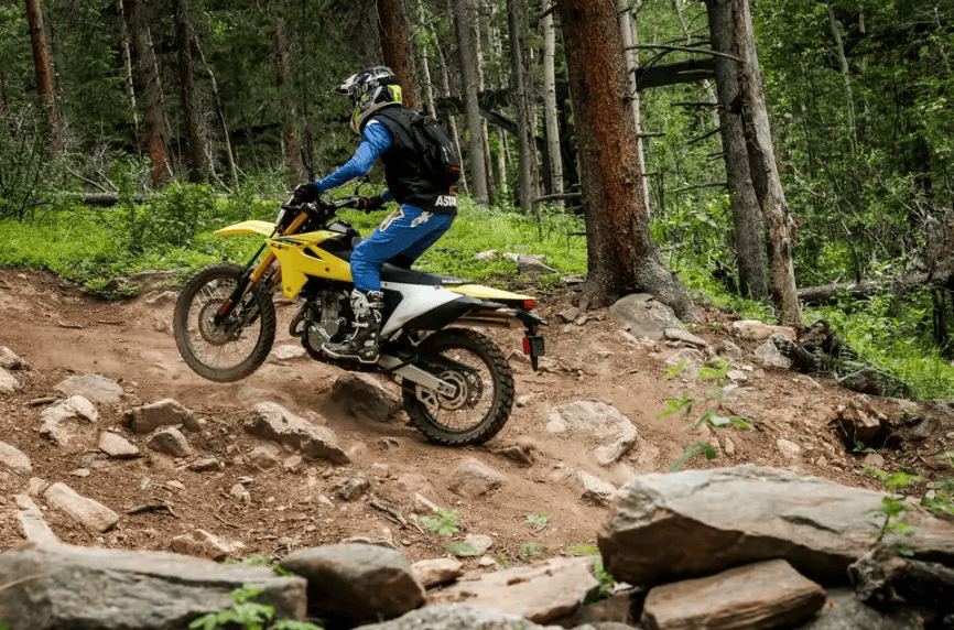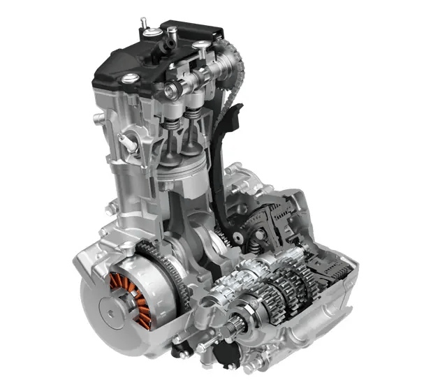 在動(dòng)力方面,DR-Z4S搭載了一臺(tái)經(jīng)過(guò)大幅升級(jí)的398mL水冷四行程DOHC 單缸 發(fā)動(dòng)機(jī),最大功率達(dá)到了28kW, 最大扭矩為37.0N·m。這款 發(fā)動(dòng)機(jī)不僅動(dòng)力強(qiáng)勁,還符合最新的Euro 5+ 排放標(biāo)準(zhǔn)。保留了上一代DR-Z400發(fā)動(dòng)機(jī)所擁有的堅(jiān)固耐用的特點(diǎn),且擁有平順且線性的動(dòng)力輸出,并在較低轉(zhuǎn)速下能提供更好的扭力輸出、高轉(zhuǎn)速反應(yīng)也更好,還優(yōu)化了油耗表現(xiàn)。